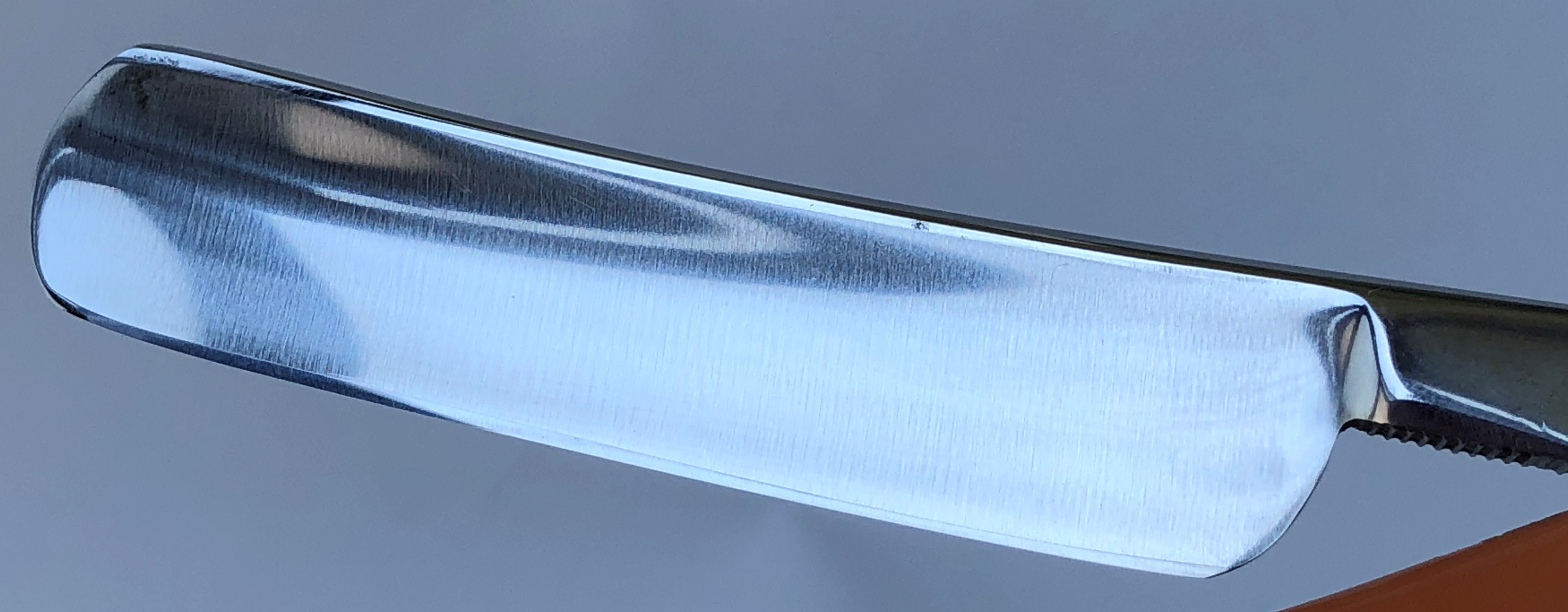 Бритва не была в пользовании. Остатки масла с консервации были удалены.Ничего не разбиралось и не ремонтировалось.Умеренно полирнул клинок, чтобы придать былой блеск и все.