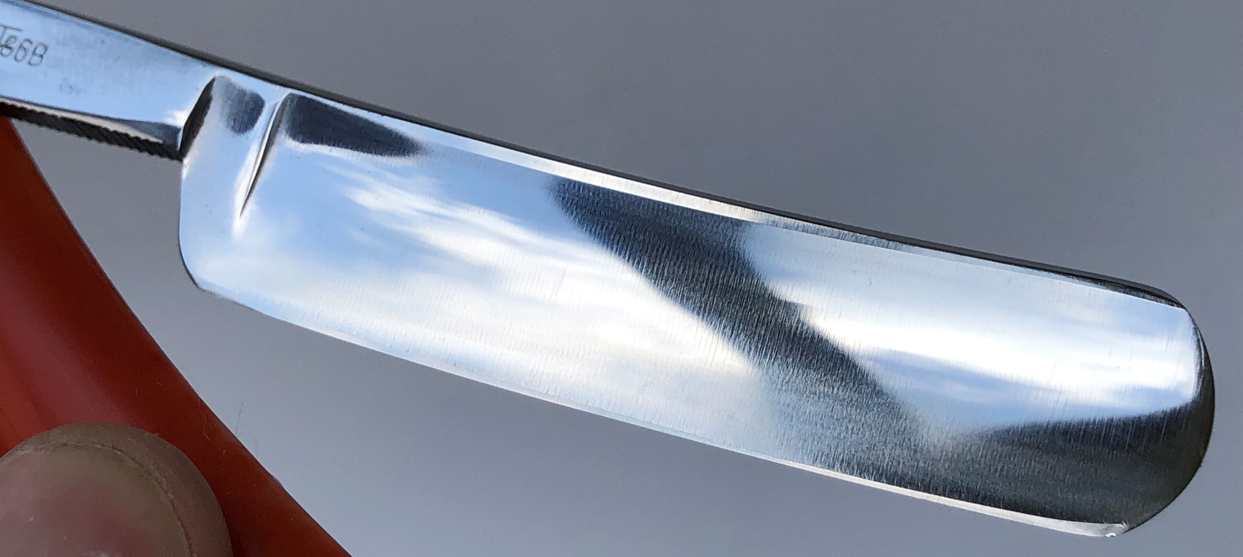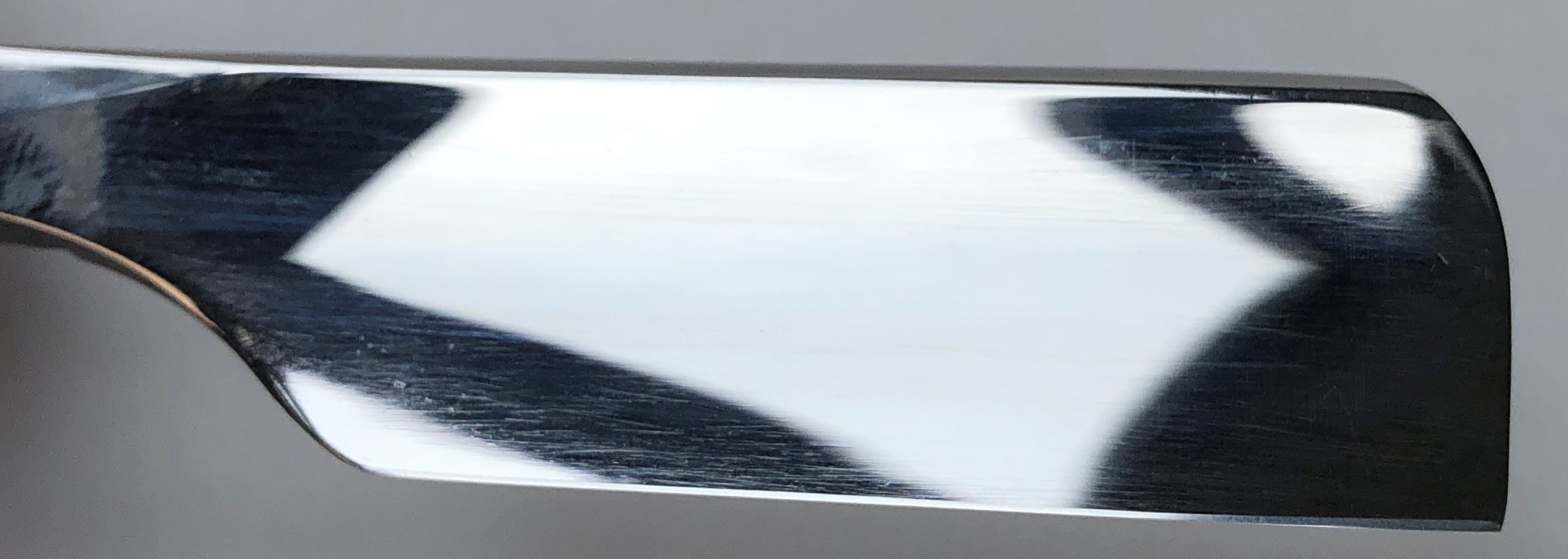 Бритва не разбиралась и не ремонтировалась. Оттер от остатков смазки с хранения. Есть несколько "следов времени", но трогать ничего не стал, чтобы сохранить полную оригинальность.Имеются следы от электро-химической заводской заточки.Идеальная геометрия полотна:кромочка равномерна по всей длине.Заводская заточка была переточена и доведена до комфортного бритья.