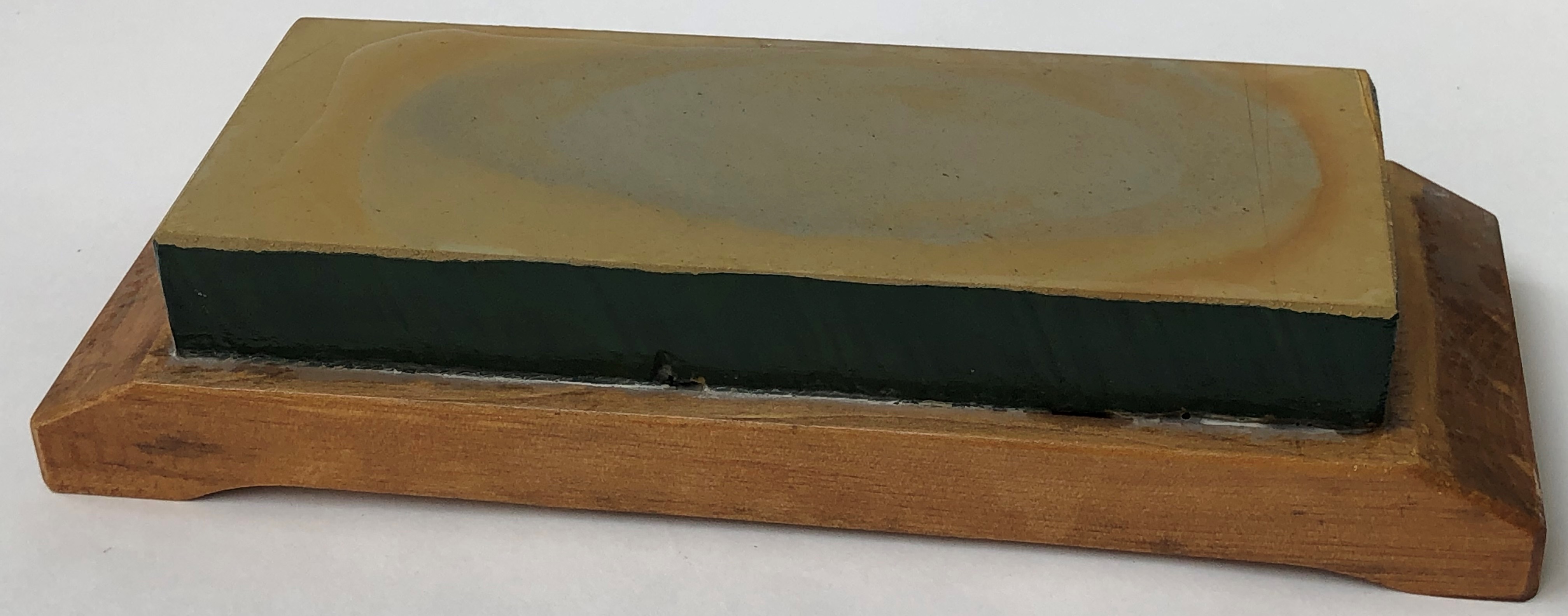 Торцы покрыты какой то краской.Рабочая поверхность не имеет трещин, прожилок,"волосяных" линий,паразитных включений и других видимых дефектов.Рабочая поверхность притерта и полностью готова.Отлично работает с сетом различных нагур.Своей суспензии практически не дает.После первых заточек и тонких доводок бритв, поверхность начинает "зеркалить" и работать тоньше.В общем и целом отличный камень на все случаи жизни и хватит надолго.Не пропустите редкую и качественную вещь!