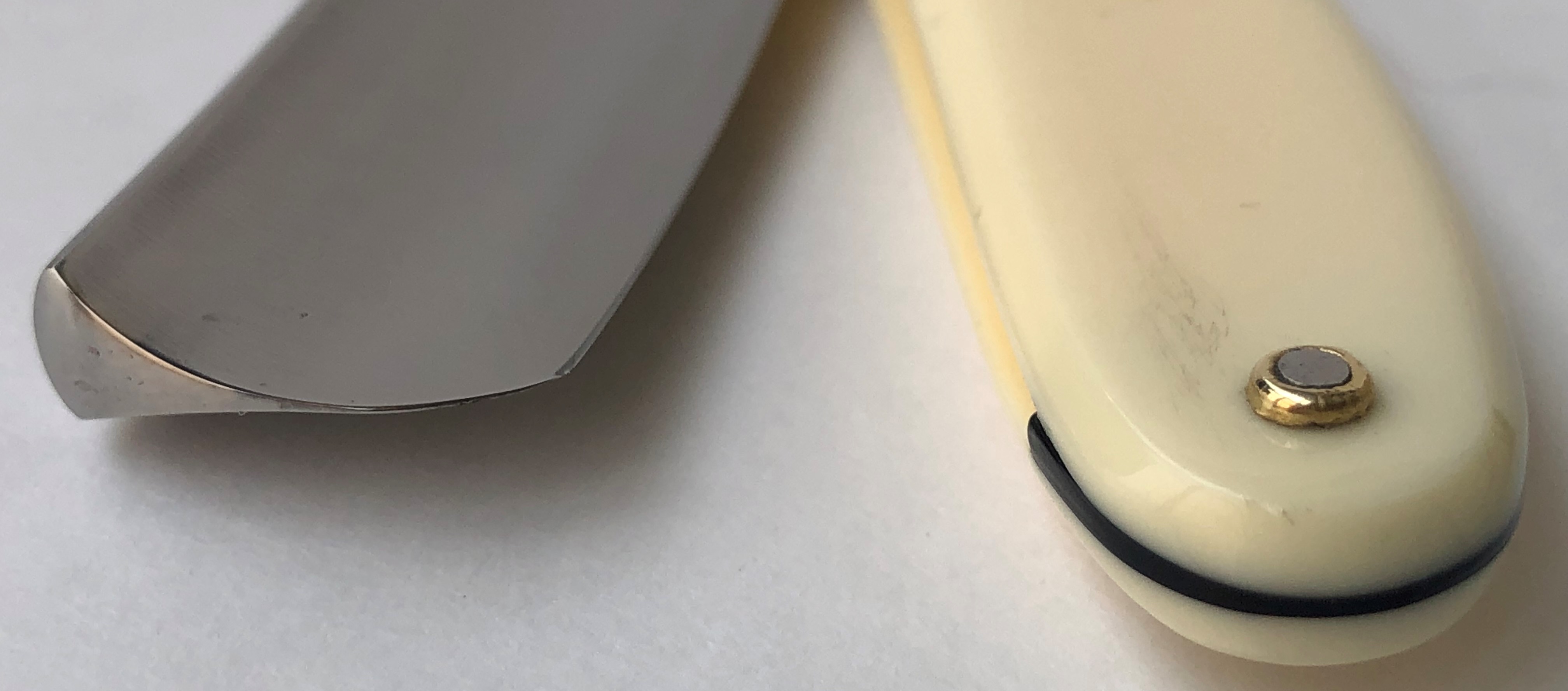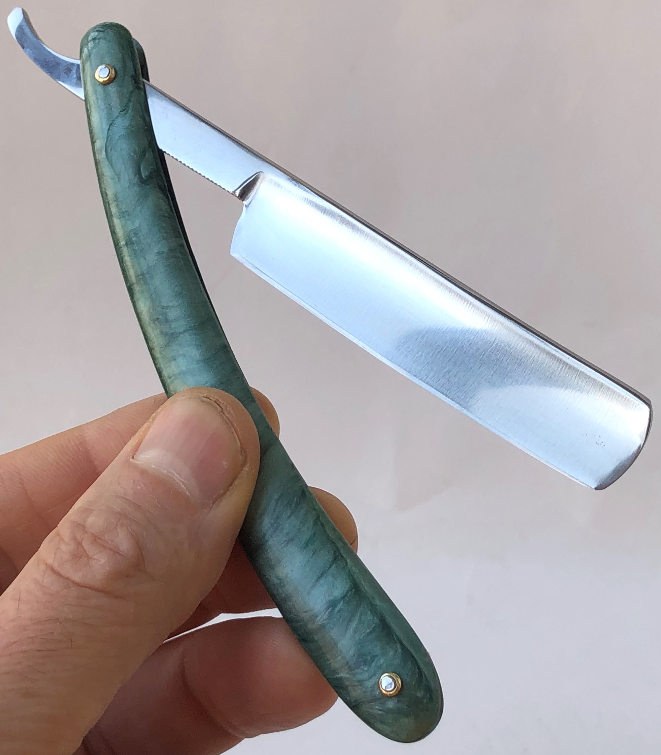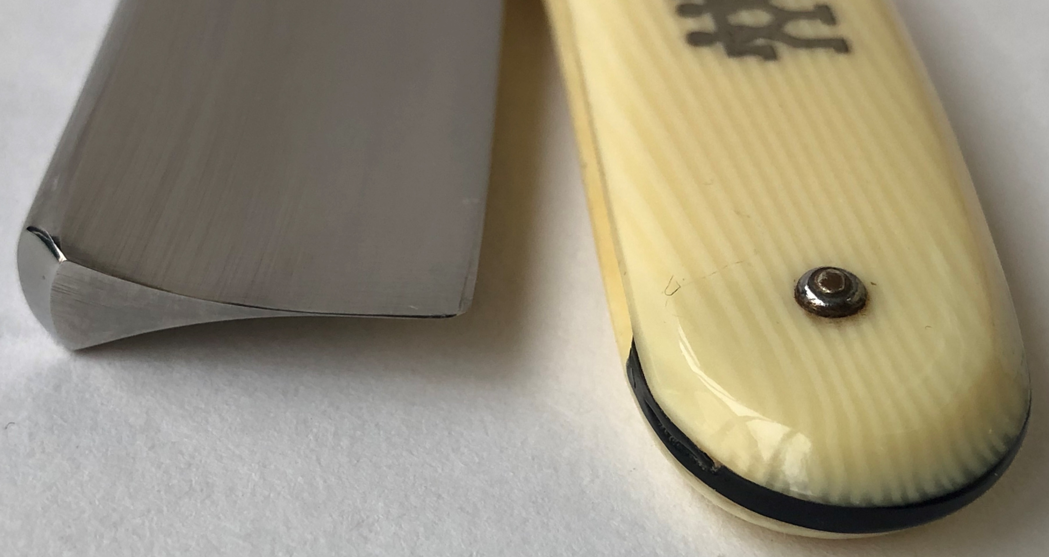 Клинок был восстановлен от следов износа. Немного скорректировал утОчку обушка, перешлифовал и умеренно отполировал.Скошенная пятка, по всей видимости бритва ранее использовалась барберами.Кромочка идеально ровная.Поменял пины на втулки и добавил внутренние шайбы. Одна плашка немного деформирована, но совершенно не критично, и лезвие закрывается по центру.В общем и целом очень приличная, с шикарной сталью старушка, получившая вторую жизнь. И абсолютно недорогая, по цене обычной ординарной непользованной советской бритвы. Особенно подойдет для новичка или любому товарищу, для кого важнее прежде всего качество самого инструмента.