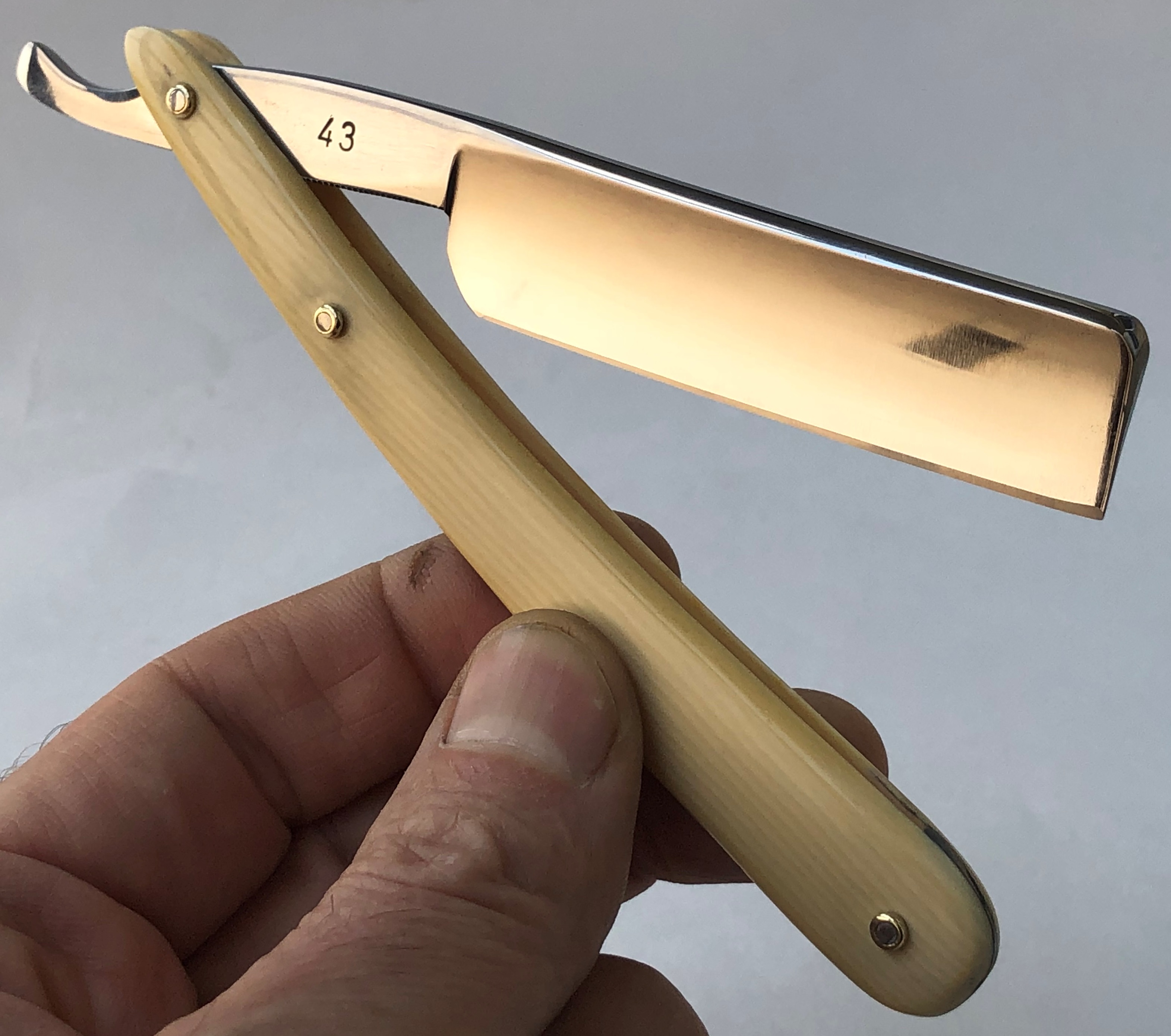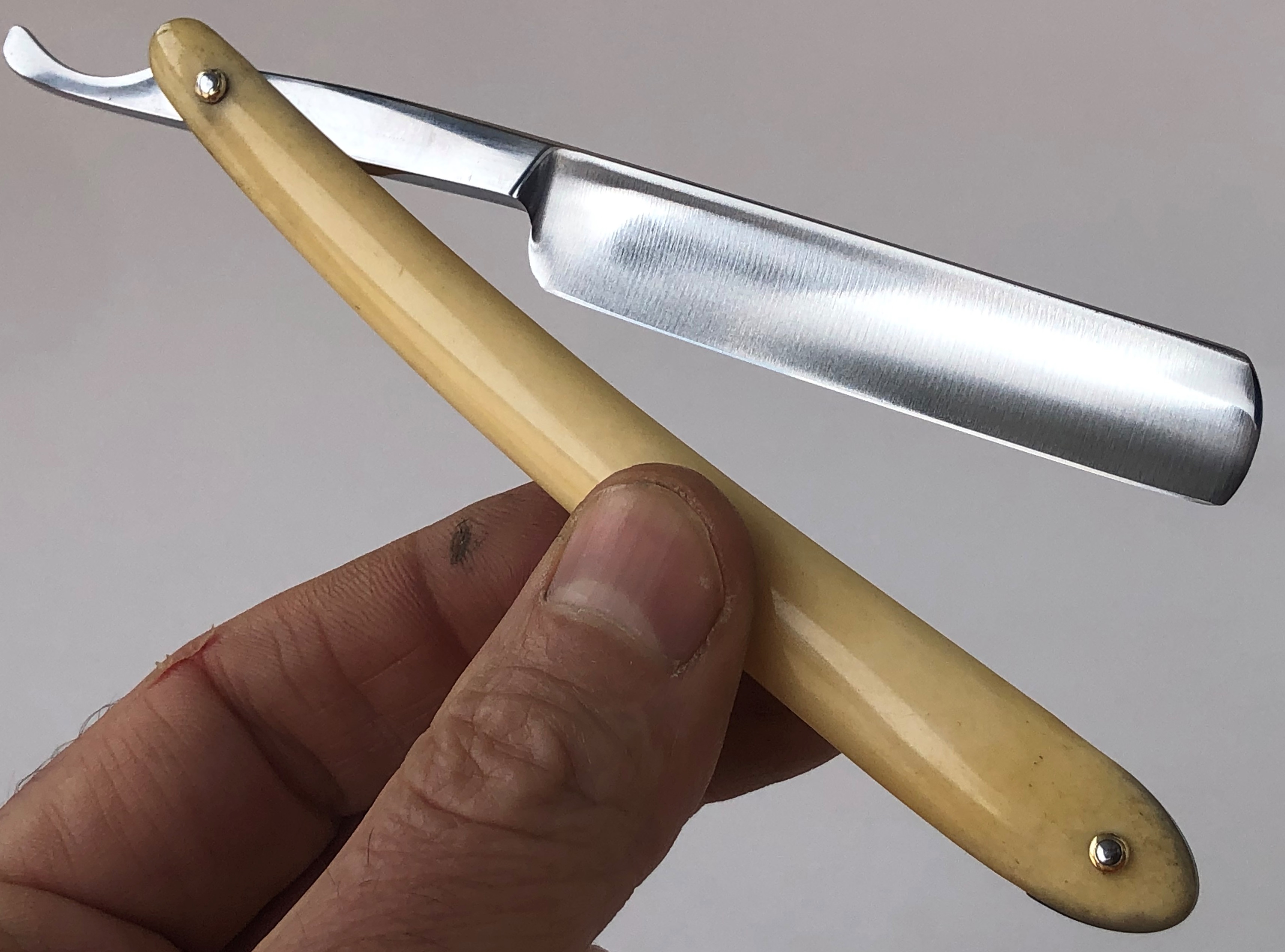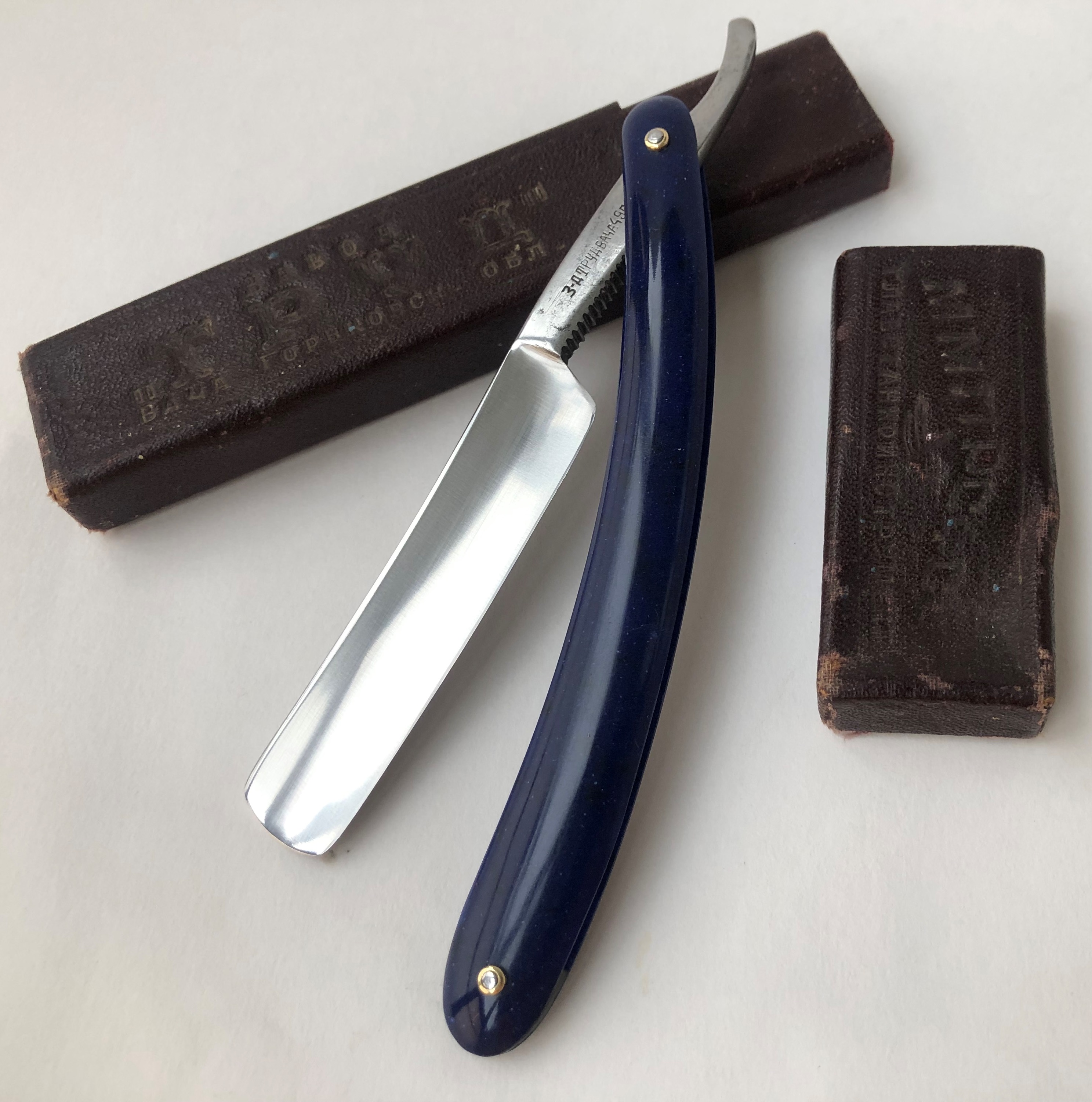 Редкая бритва, на моей памяти ничего подобного никогда не попадалось, особенно в таком непользованном или малопользованном состоянии.Была разобрана, для удаления следов окисления металла, а также с добавлением внутренних шайб.Идеальная геометрия полотна:кромка равномерна по всей длине.Сталь и кромка чистые, без видимых дефектов. Шикарная оригинальная оправа из натуральной кости.Бритва заточена и лично протестирована. Очень качественное и чистое бритье. Не пропустите редкую вещь в свою коллекцию.