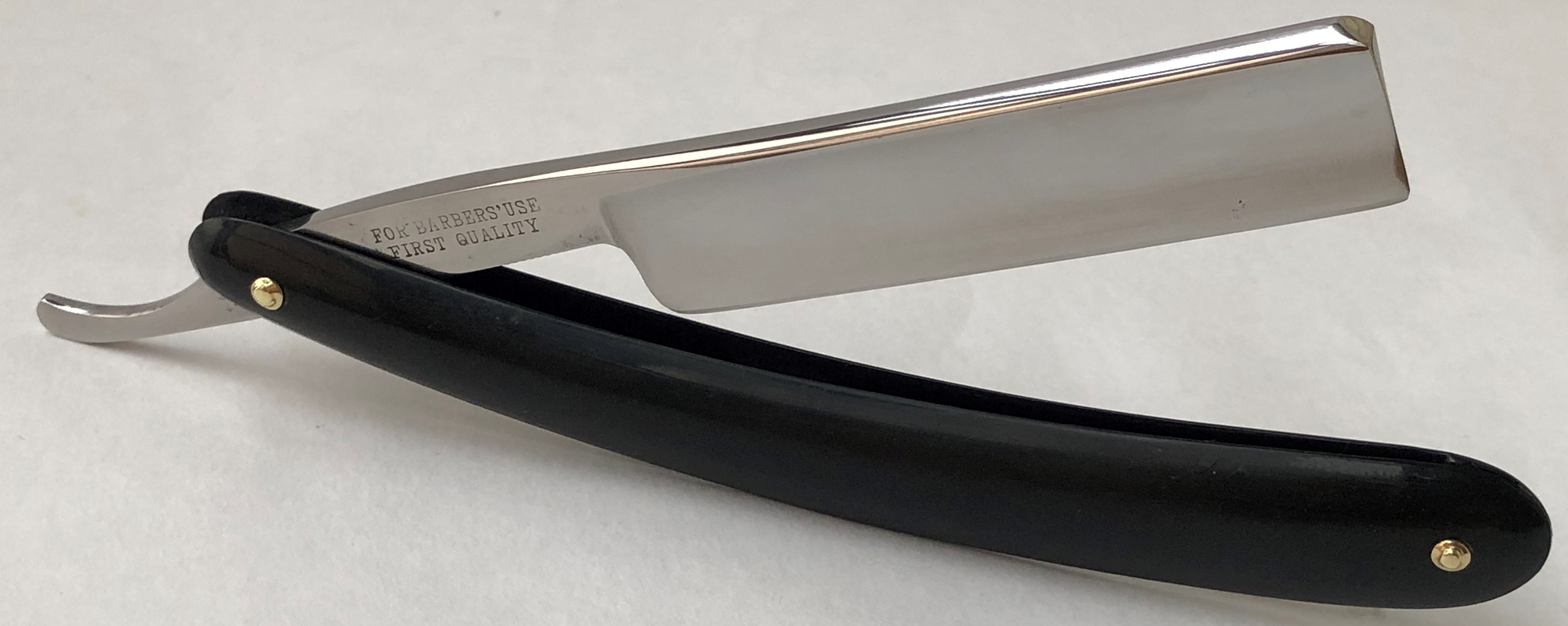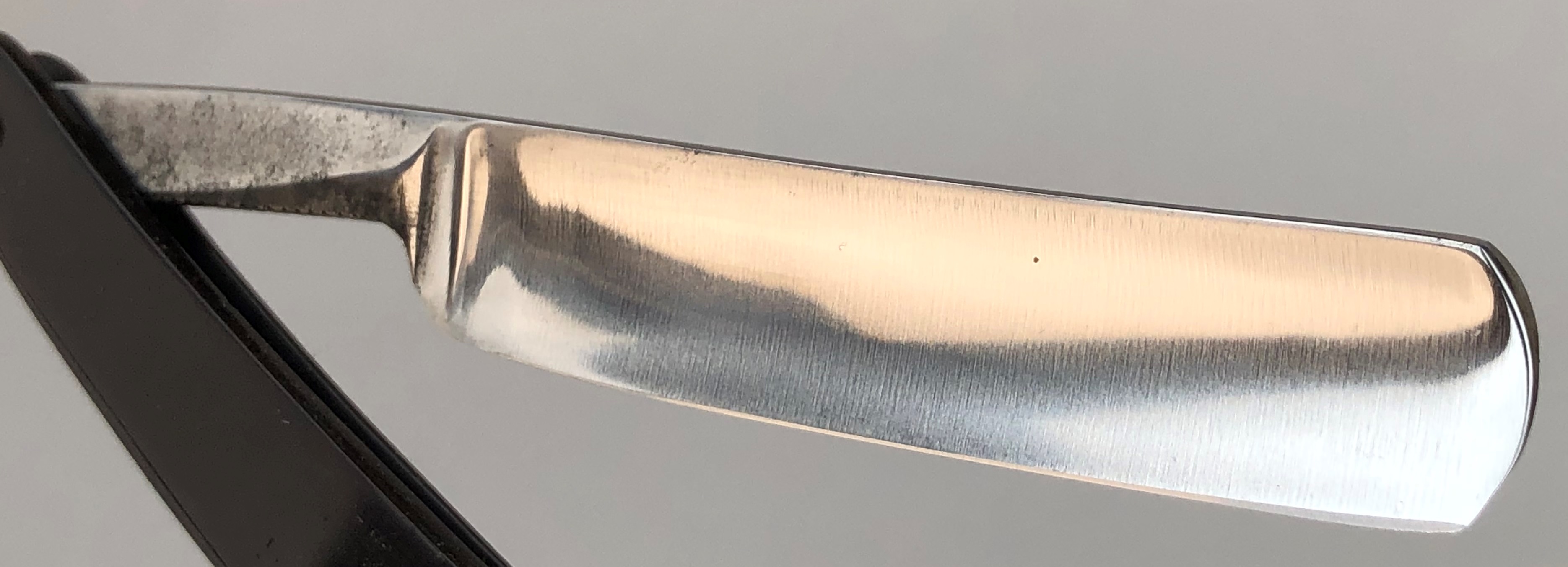 Бритва в состоянии близком к идеальному.Без следов пользования и износа металла.Была разобрана для проведения минимальных косметических работ.Умеренная шлифовка и полировка клинка. Идеальная геометрия полотна:кромка равномерна по всей длине.Удобная форма бритвы, чисто в английском стиле, очень удобна для новичка, а также в коллекцию.Очень хорошая сталь.