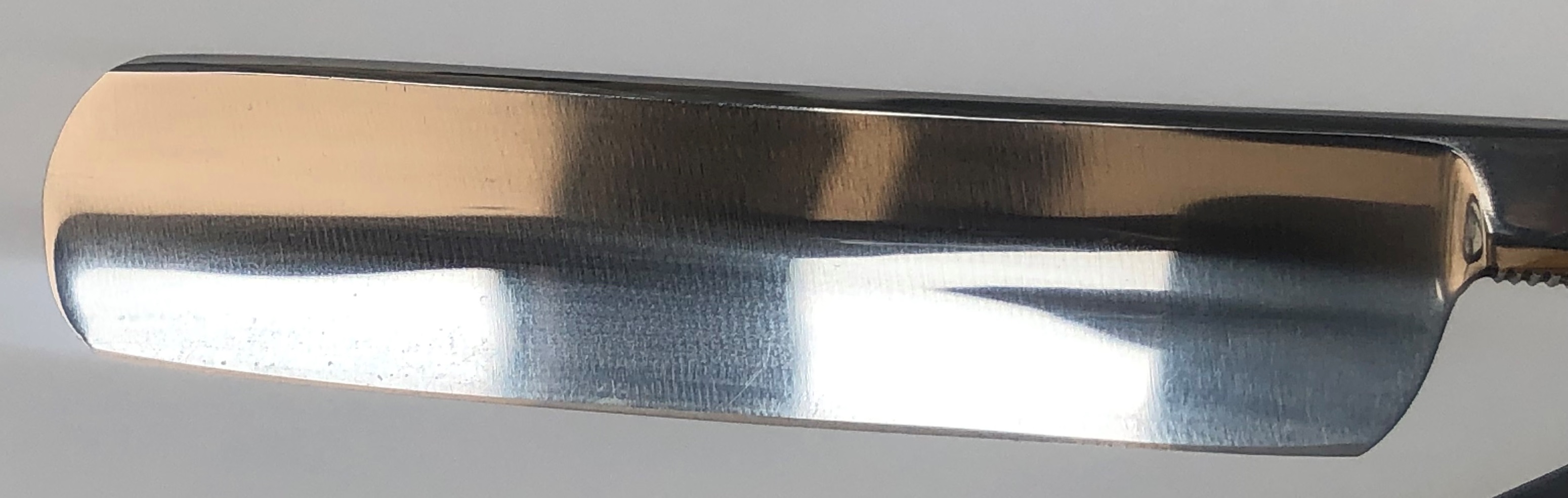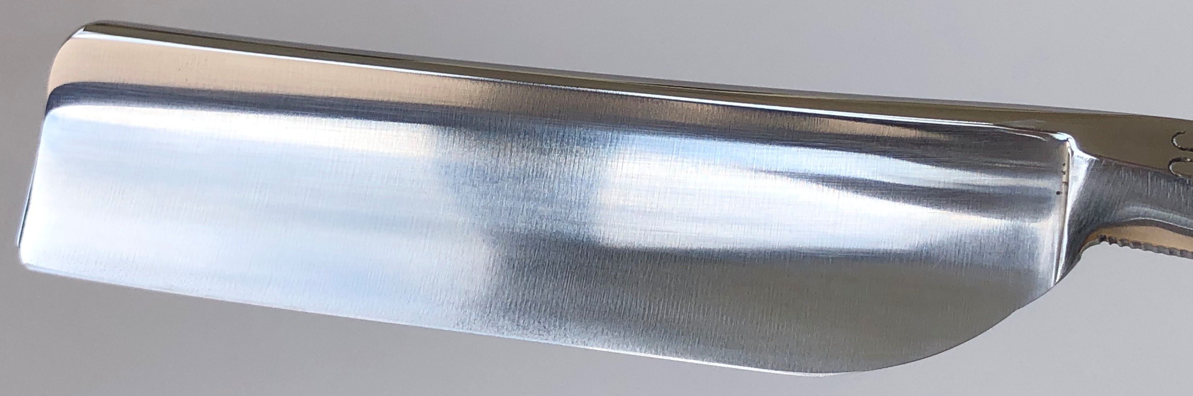 Бритва без следов активного пользования. Ничего не разбиралось и не ремонтировалось. Все в оригинале. Родная шлифовка и полировка полотна. Кромочка равномерна по всей длине. Сталь чистая от разного рода видимых дефектов. Заточена и готова к бритью.