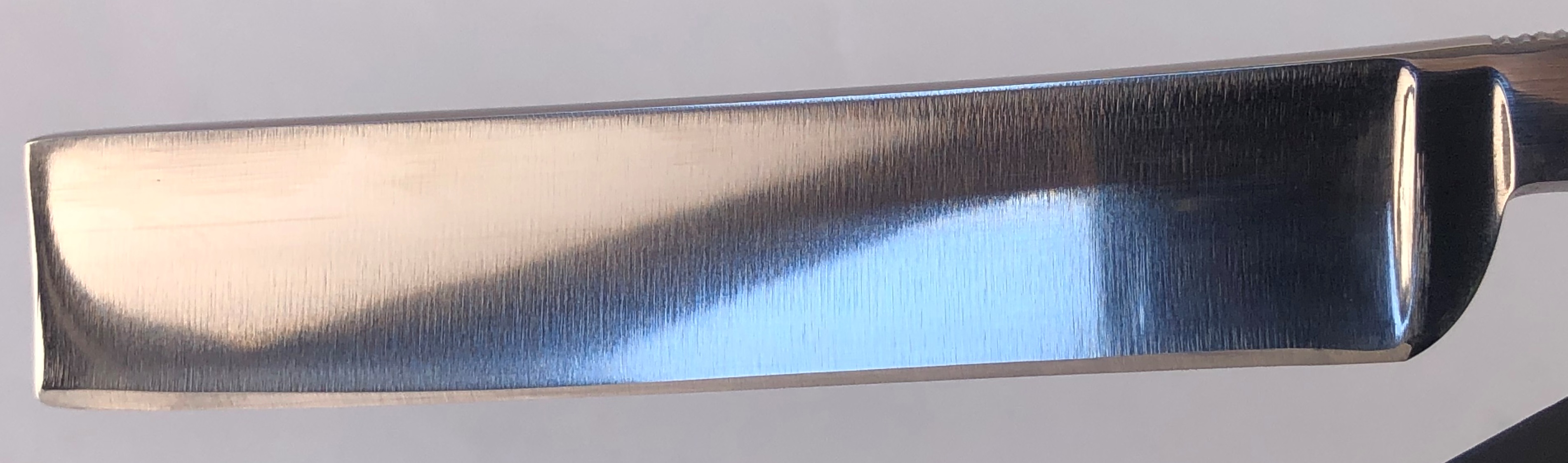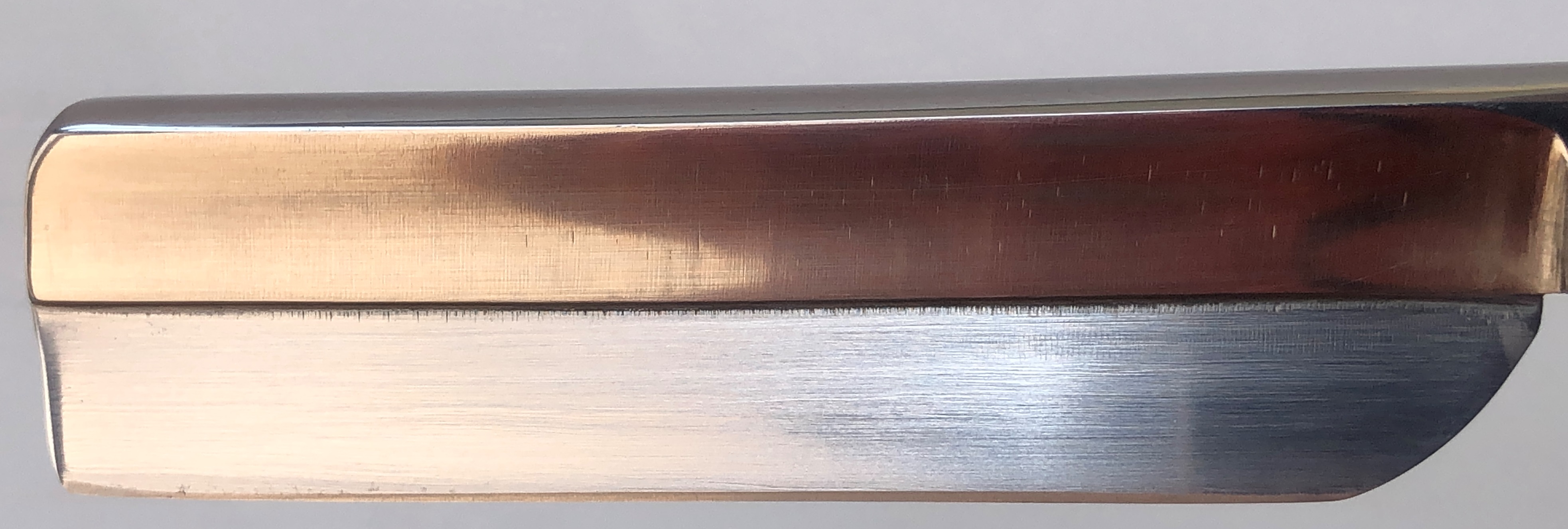 Бритва в очень хорошем и малопользованном состоянии.Клинок был заново перешлифован и умеренно отполирован. Как и полагается,комбинированная продольно-поперечная шлифовка.