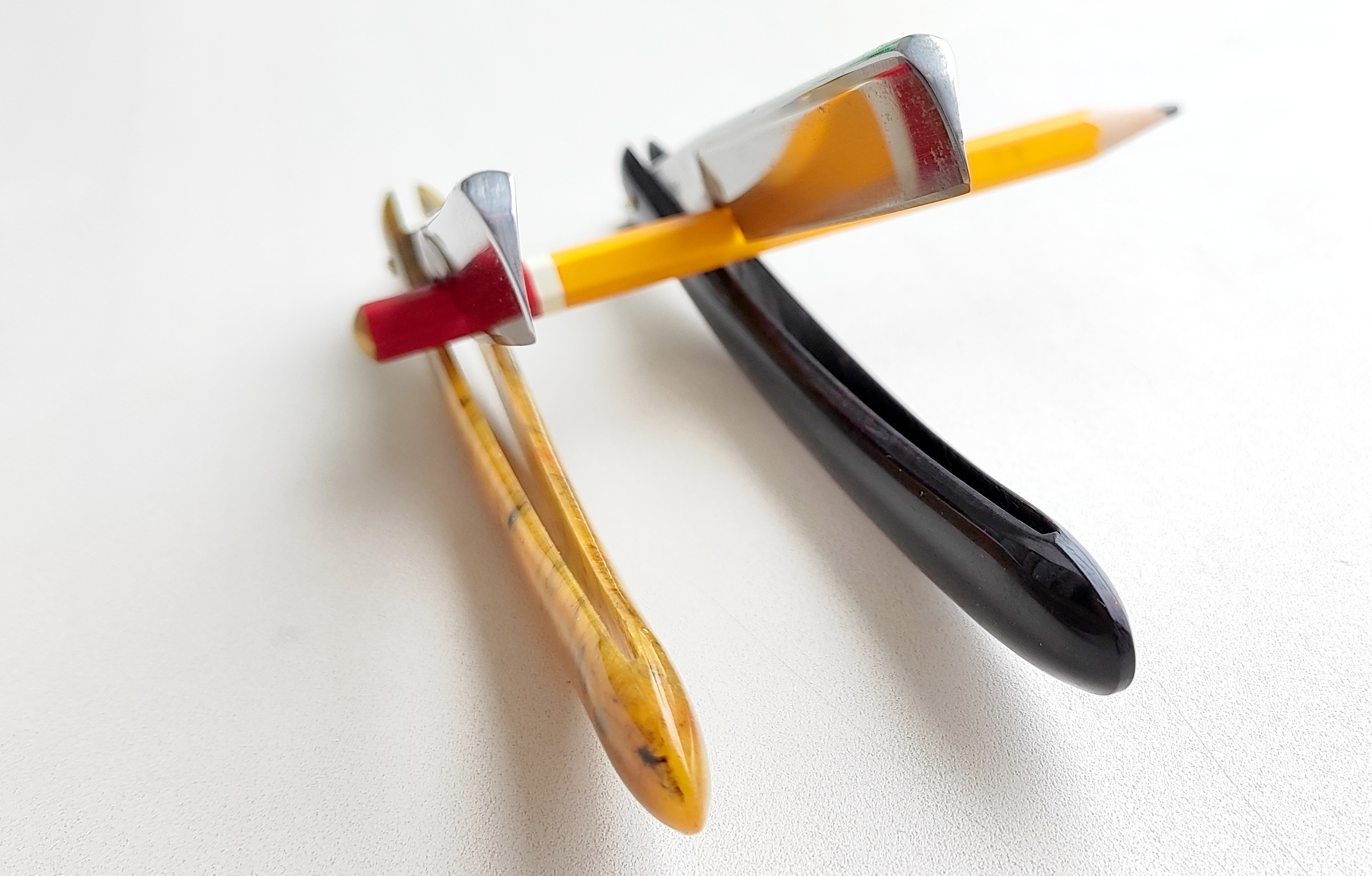 Опасная бритва Ока (в наличии 2 штуки), завод ЗТВ (Вача), 1962 и 1967 годы. Ширина полотна каждой - 15 мм, все родное, без футляров. Бритвы попали ко мне с уточенностями, вручную почистил и заточил. Подготовлены мной к бритью. Ока - бритва из водной серии, куда еще входили Кама, Волга, Яхта. Прямой нос и прямая линия кромки с небольшой шириной полотна - хорошо подойдут для окантовки бороды.