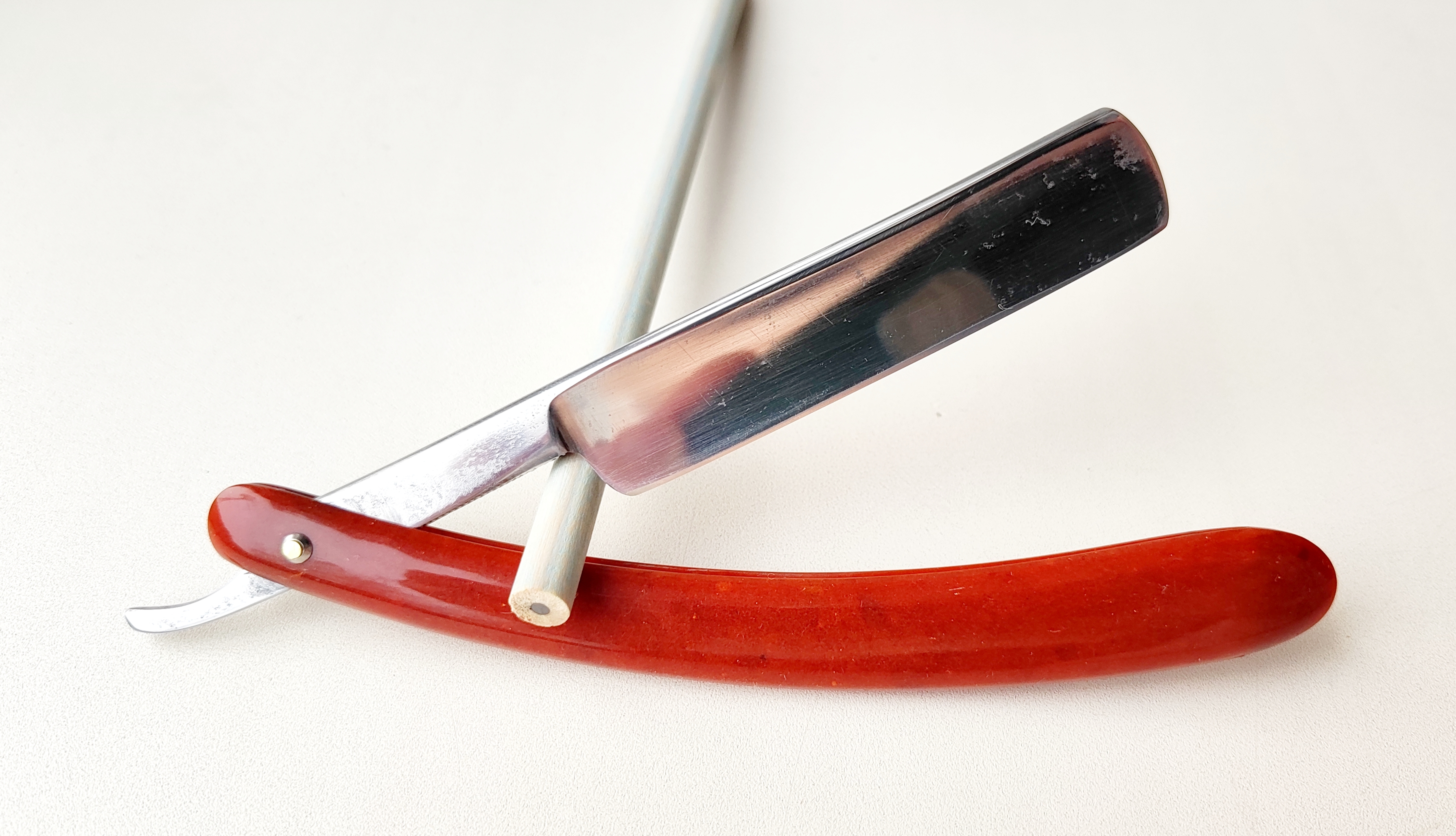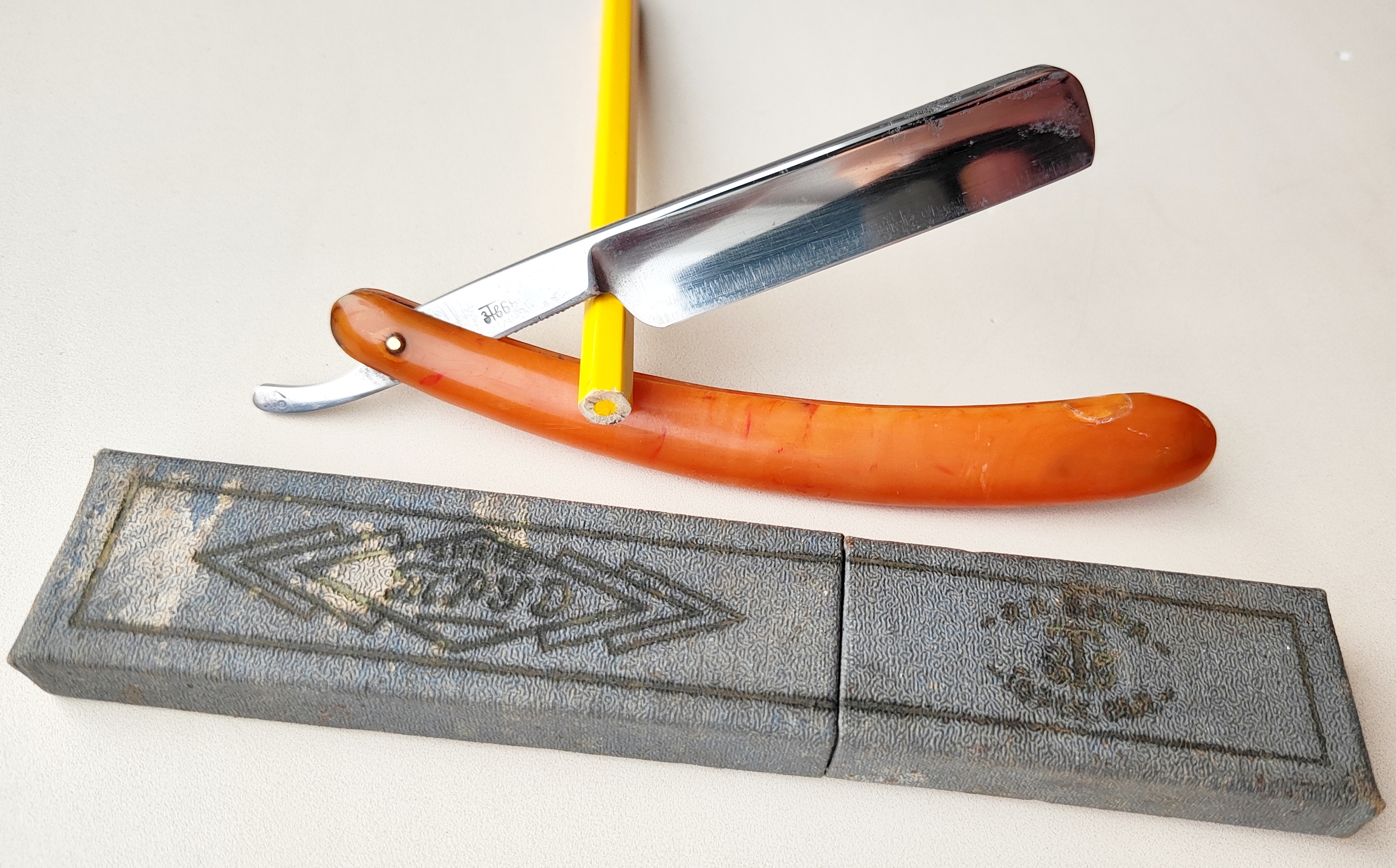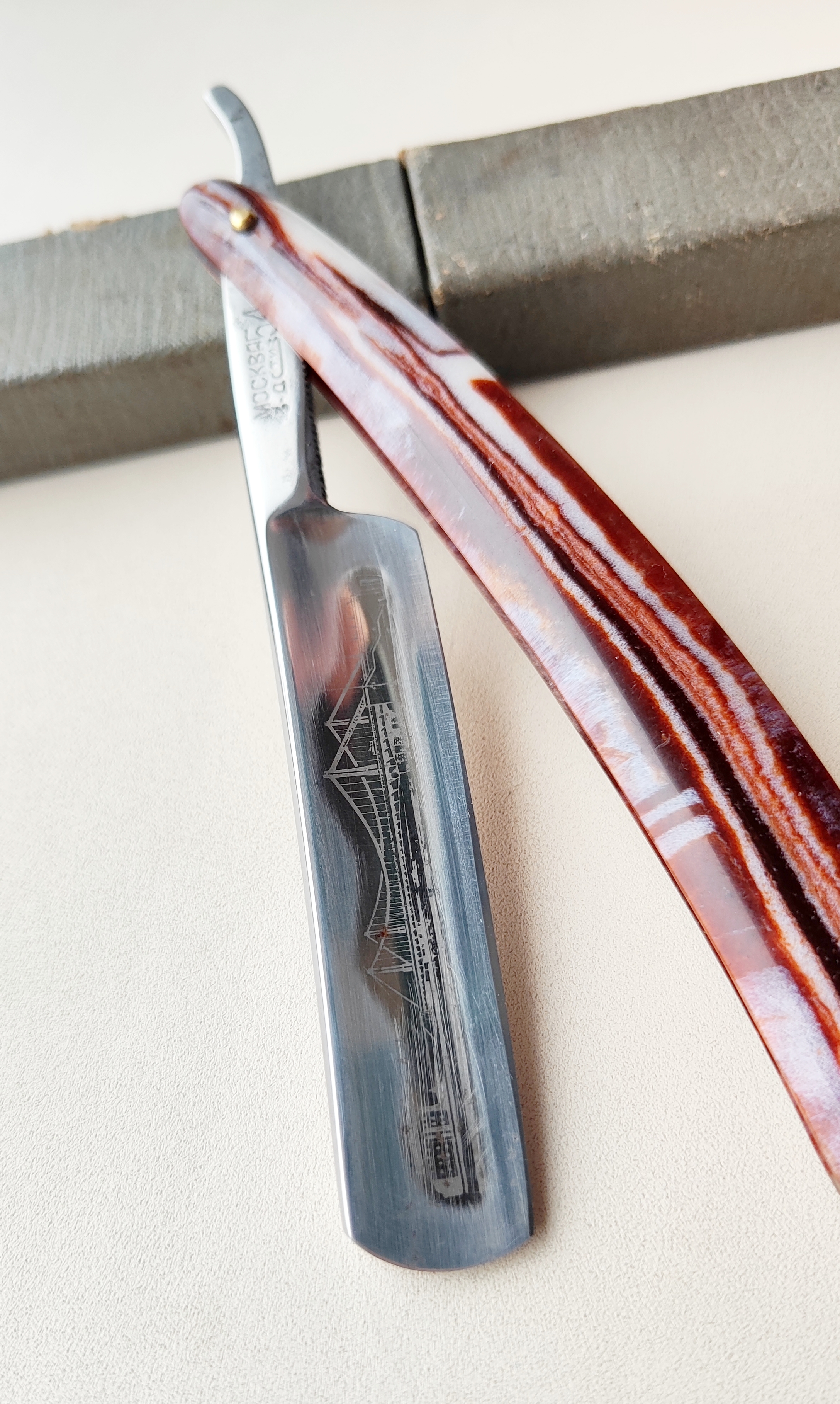 Опасная бритва с фото не продается и к ремню не прилагается.