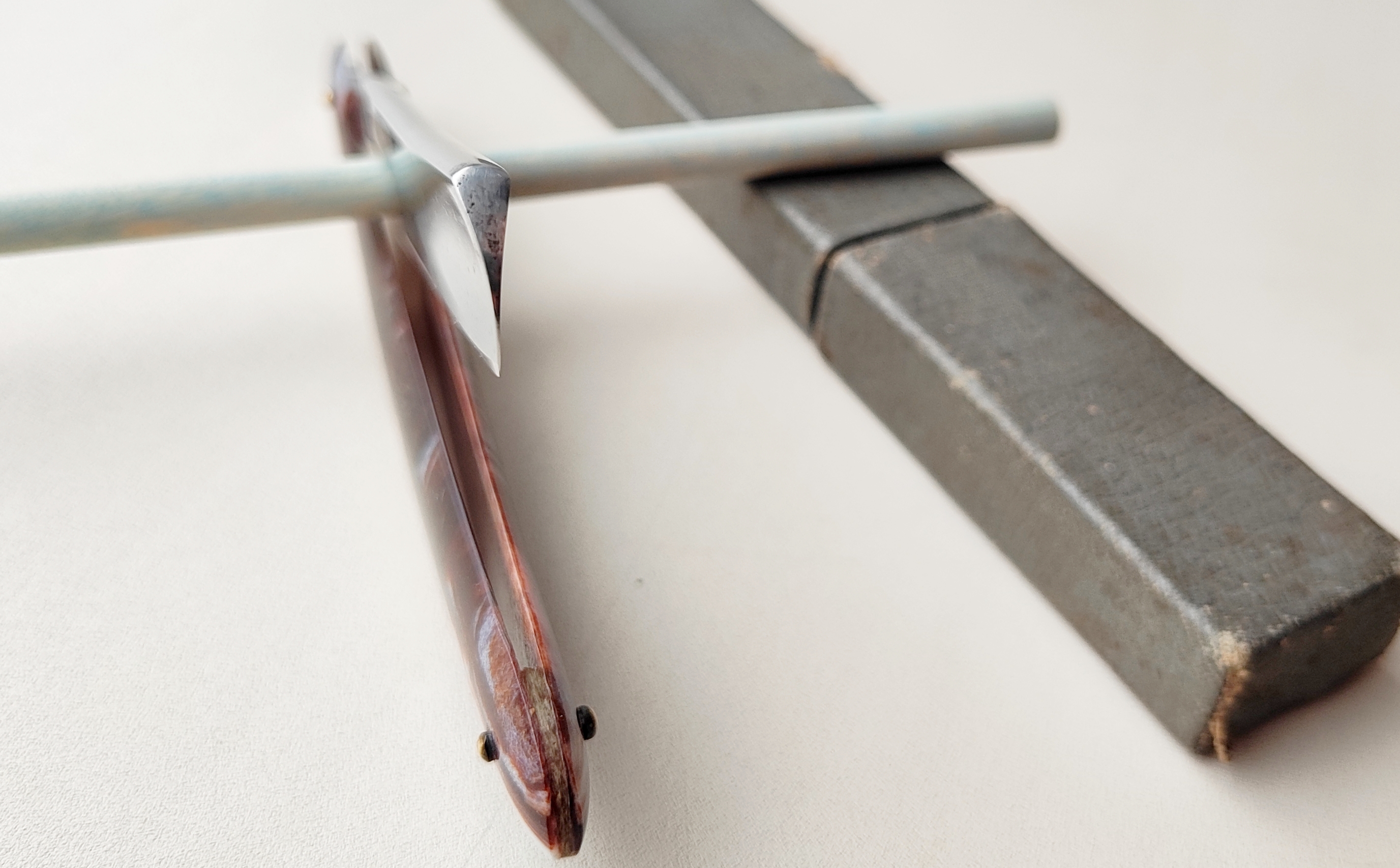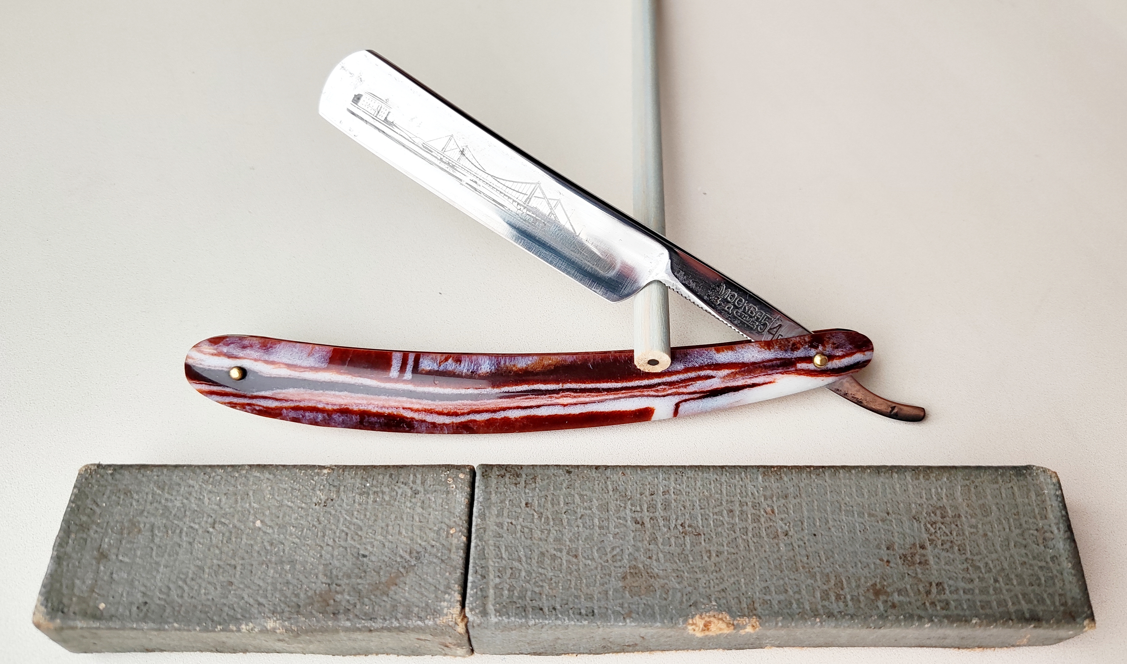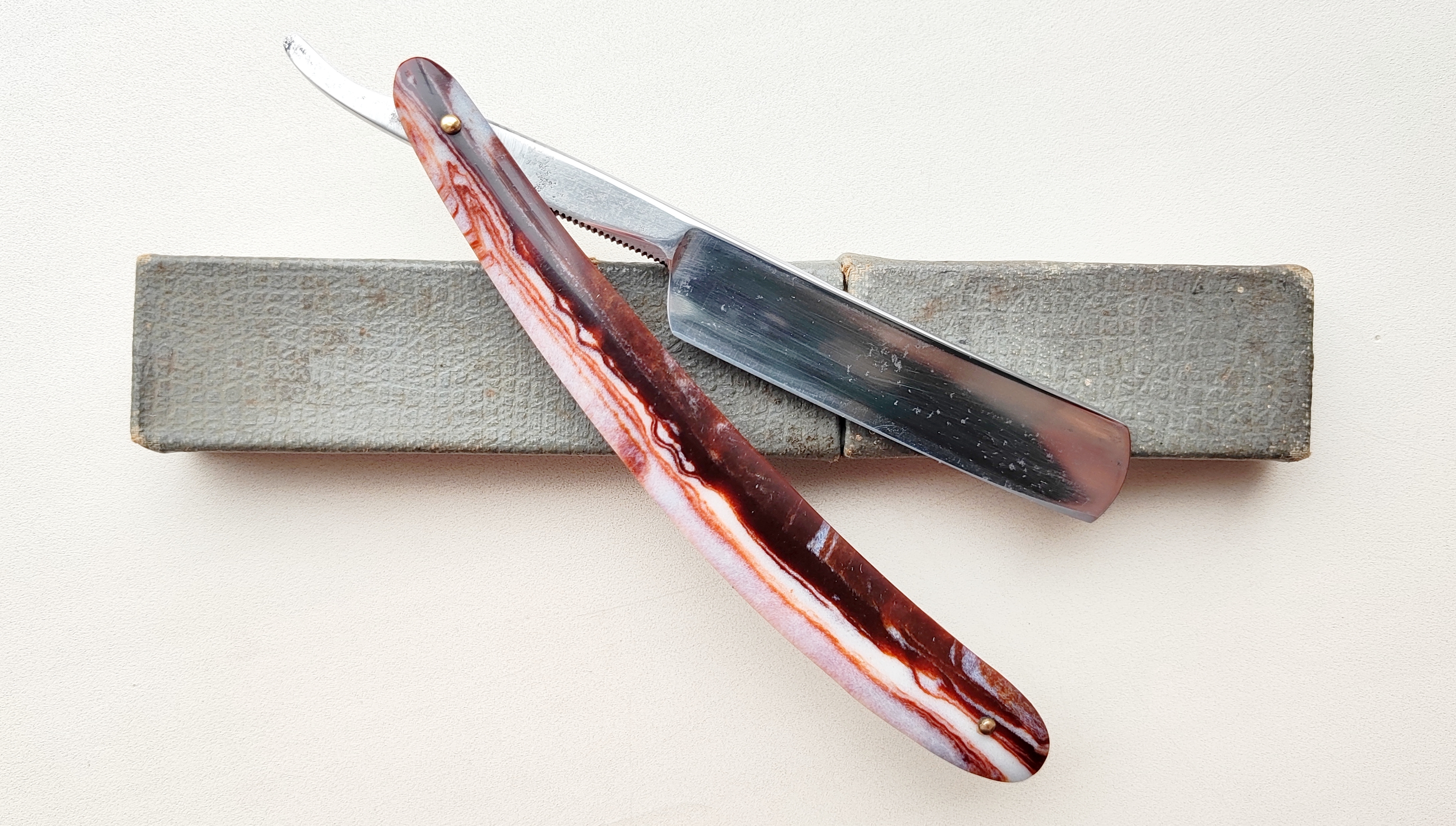 Опасная бритва с фото не продается и к ремню не прилагается.