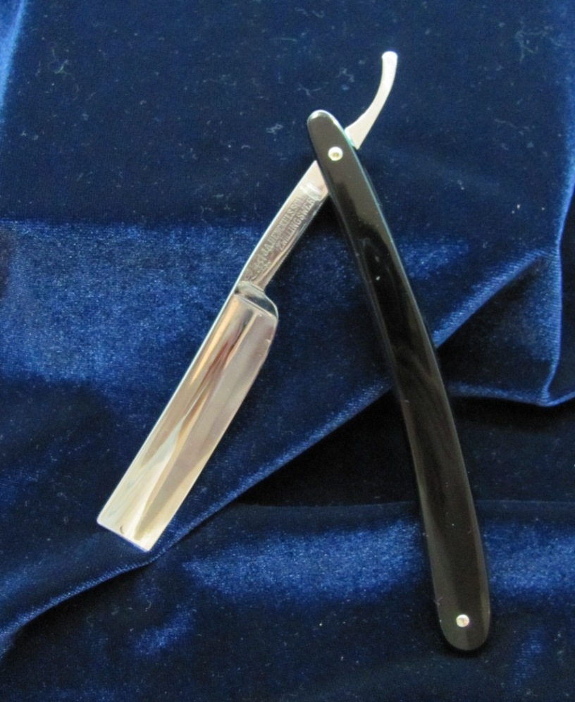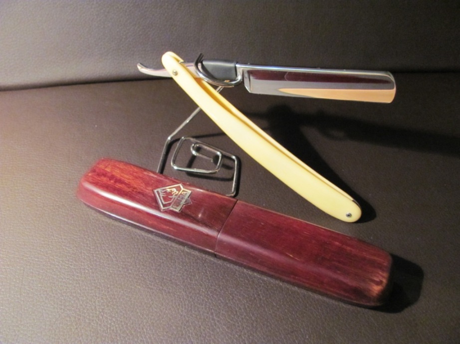 Параметры: ширина 16,5мм, обух 4,3мм. Ручка из кости, ровная, без потерь. Возраст- скорее всего довоенный выпуск на экспорт. Бритва прошла процесс реставрации и заточки лично мной, пины , геометрия, клеймо производителя были сохранены. Продано Oxford Razor Show