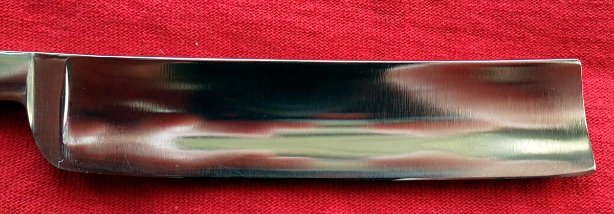 Надпись на полотне: WHOLE HOLLOW GROUND Ручка - эбонит. Очень приятная бритва - хорошо точится, притом хорошо держит заточку - садится после бритья весьма незначительно. 4 дня сравнивал в бритье с парой своих любимых широких бритв. "Старички" победили только в силу привычки, т.к. в бритье я разницы не ощутил - просто прекрасно. Естесственно, заточена и полностью готова к бритью. Ширина полотна 20 мм, толщина в обухе 5,5 мм.