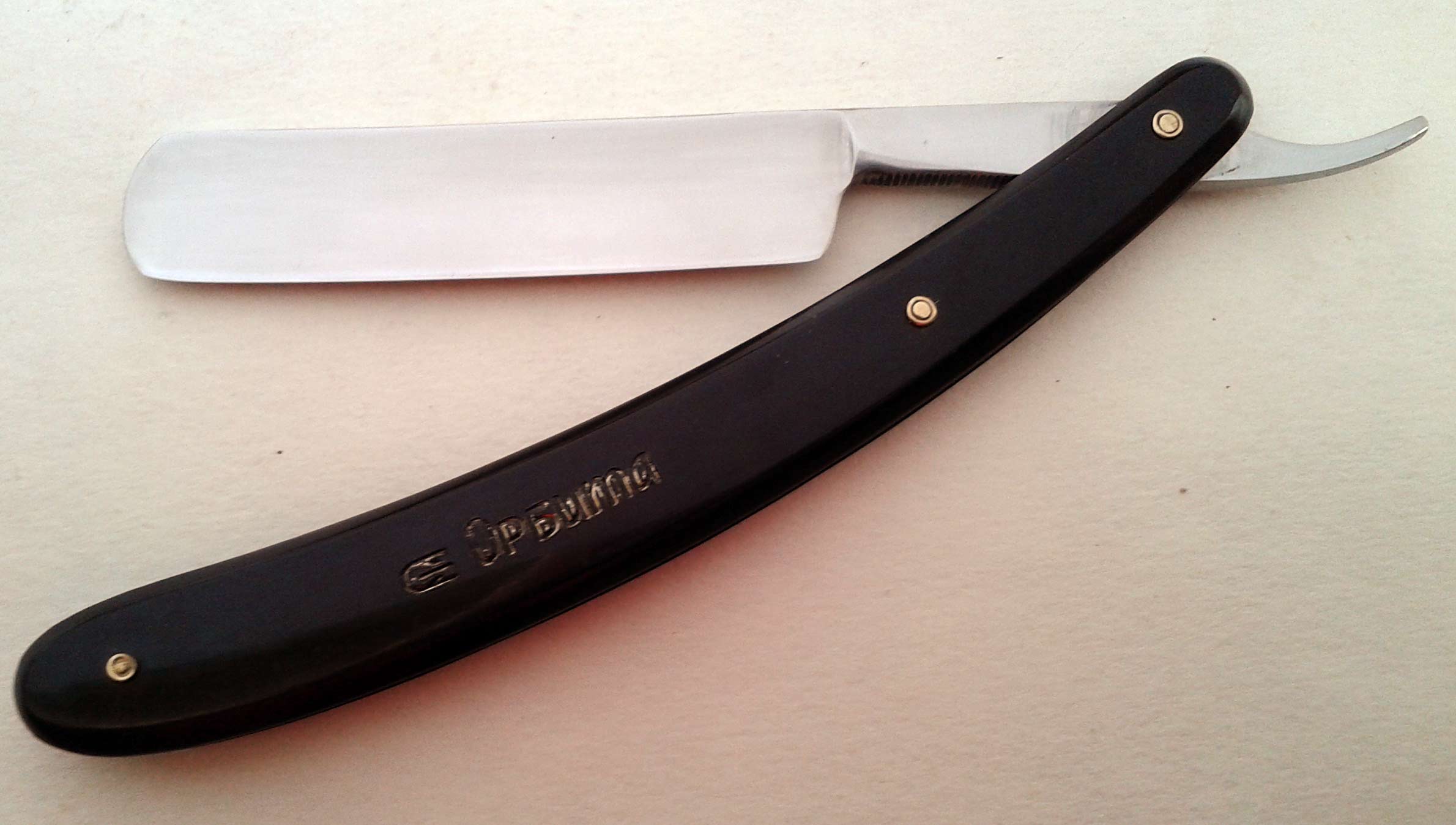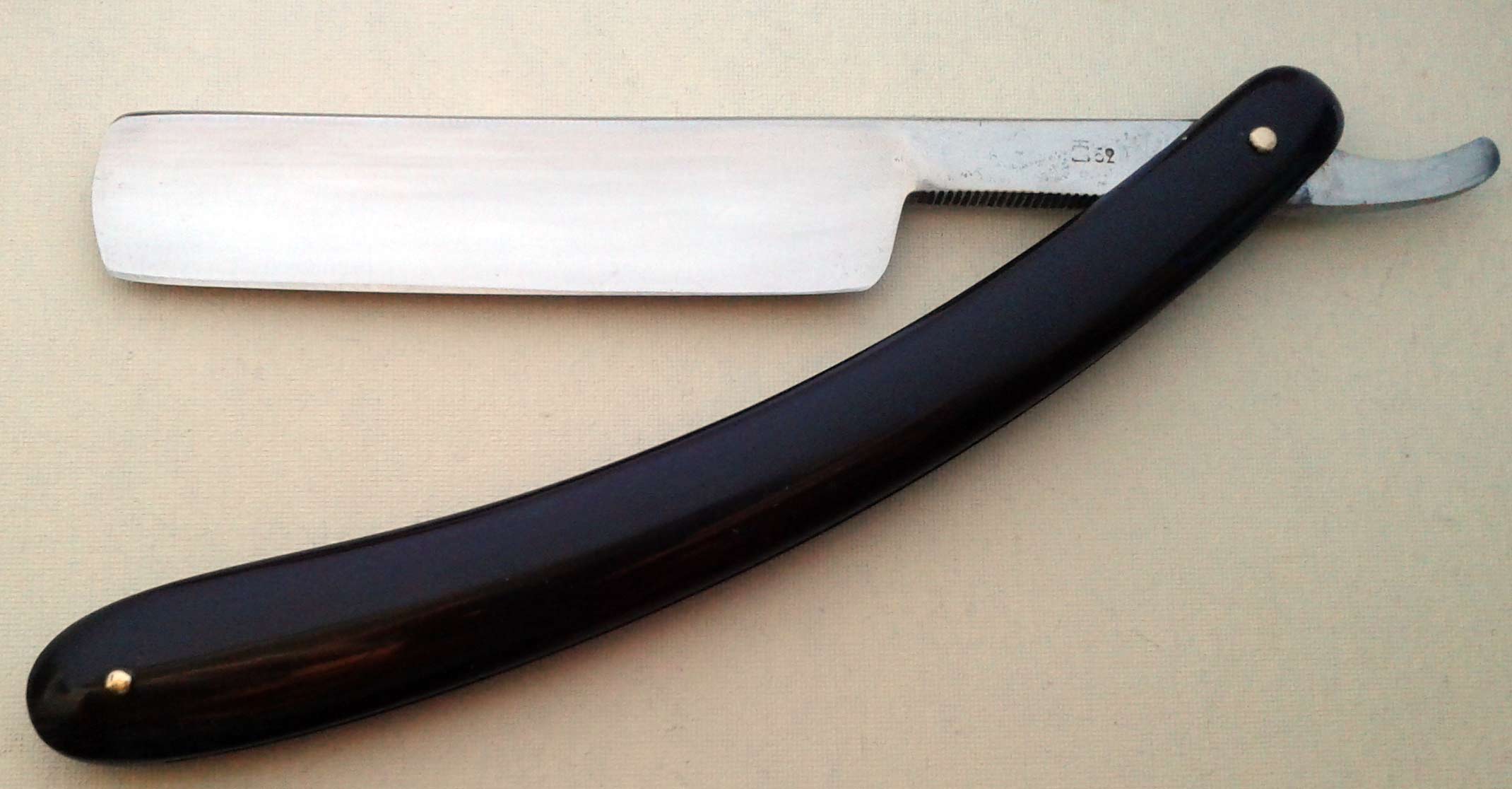 Сведения о производителе: http://britva.ru/forum/viewtopic.php?f=28&t=1663" onclick="window.open(this.href);return false; Ручка - эбонит, в приличном состоянии, клинышек из металла. По-видимому, ручка и пины родные. На полотне присутствуют небольшие "следы времени". Заточена и полностью готова к бритью. Ширина полотна 16,5 мм, толщина в обушке 4,5 мм. Цена 60 евро, доставка включена. Spoiler Show