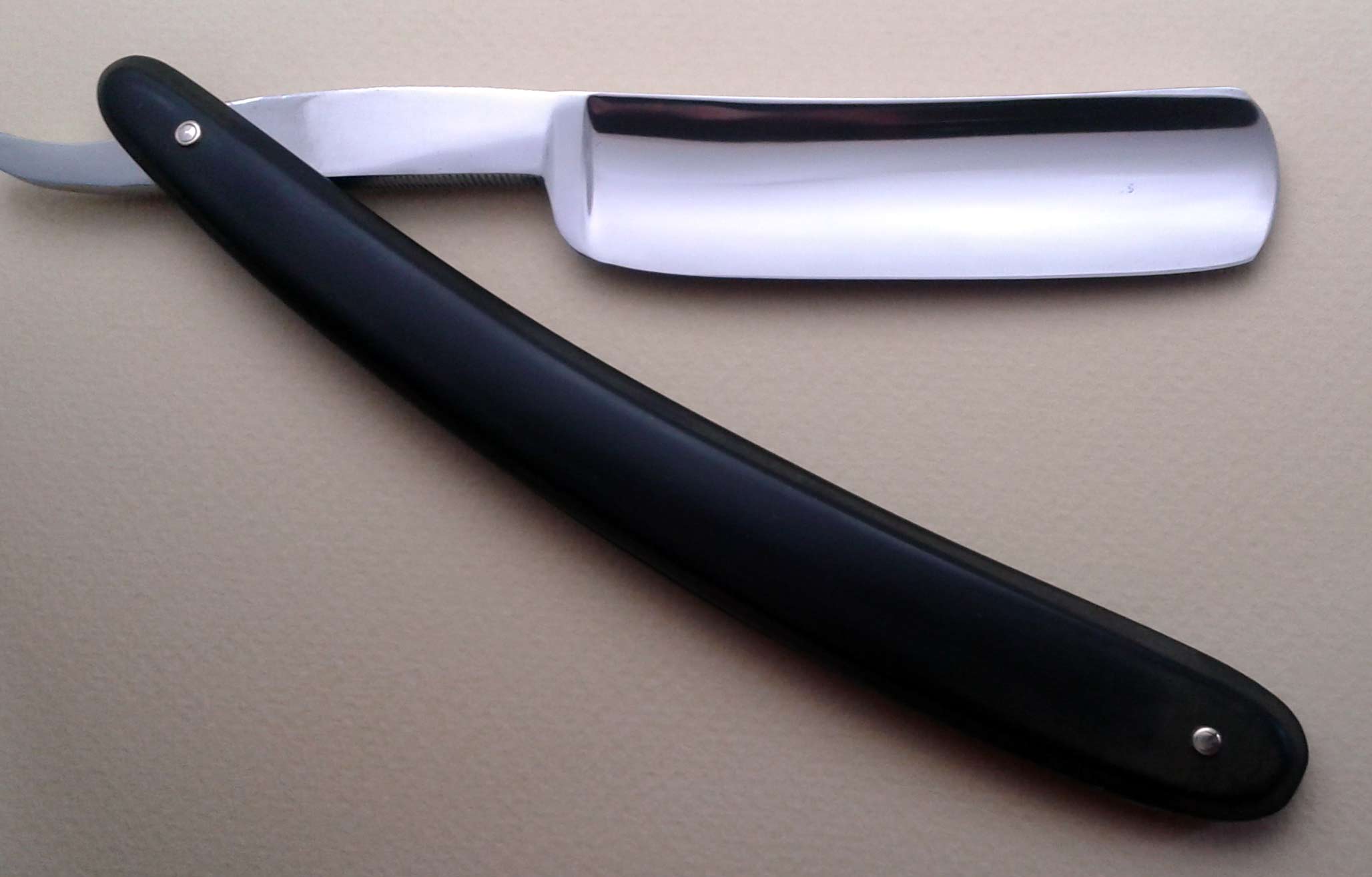 Ручка - эбонит, в отличном состоянии, легкий зеленоватый налет времени. По-видимому, ручка, пины и клинышек родные. Заточена и полностью готова к бритью. Ширина полотна 17 мм, толщина в обушке 5 мм.
