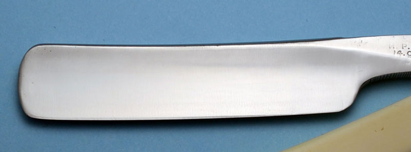 Сведения о фирме: http://britva.ru/forum/viewtopic.php?f= ... itt#p53482" onclick="window.open(this.href);return false; Фирма благополучно здравствует и поныне, правда, опасные бритвы уже не продает http://www.truefittandhill.co.uk/" onclick="window.open(this.href);return false; Скорее всего, бритва изготовлена в Шеффилде по заказу этой фирмы. Ручка из кости, родная, клинышек - металл. У концевого пина имеется трещина. Проклеена цианакрилатом, прочность на уровне, при нормальном использовании проблем не будет. Геометрия - клин, бритва точилась очень немного или вообще не точилась. Заточена и полностью готова к бритью. Ширина полотна 18 мм, толщина в обушке 5.5 мм.