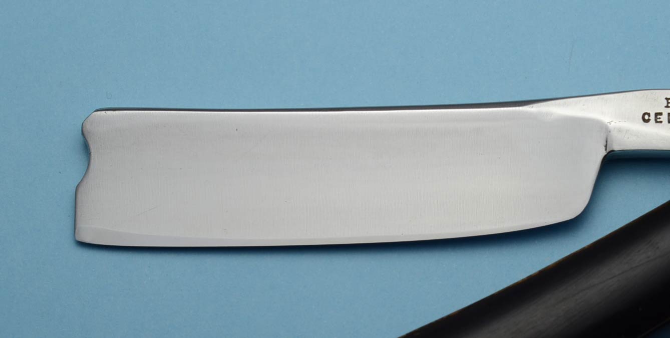 Ручка из эбонита, в отличном состоянии, по-видимому, родная Весьма тяжелая бритва, по геометрии quarter hollow (1/4). Опробовал в бритье - отлично работает, по ощущениям при бритье ближе к клину. Заточена и полностью готова к бритью. Ширина полотна 19.5 мм, толщина в обушке чуть меньше 5.5 мм.
