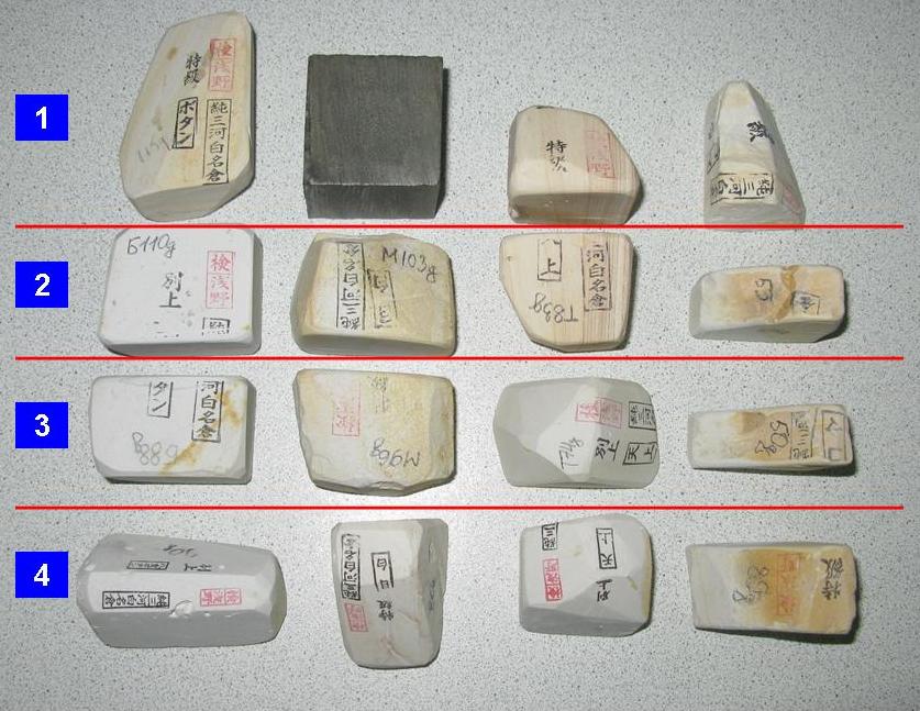 Re: Японские нагуры от 10г продамПринято. Спасибо. С кома небольшой нюанс - я Вам написал в личку. Также обратите внимание на сет №№2 и 3 - это очень старые нагуры, работают великолепно, впрочем как и остальные. Сет этот (ботан-меджиро-тензё-кома) собирал отпиливая от своих нагур, которыми работаю в настоящее время. Цена повыше конечно - сортировка, распил, тестирование - но оно того стоит. Одно НО! - эти два сета под твердый хонзан - не менее 4,5 из 5 - коричневые нагуры, особенно кома, тверже белых, но и работают по-тоньше. Комплексное решение заточки