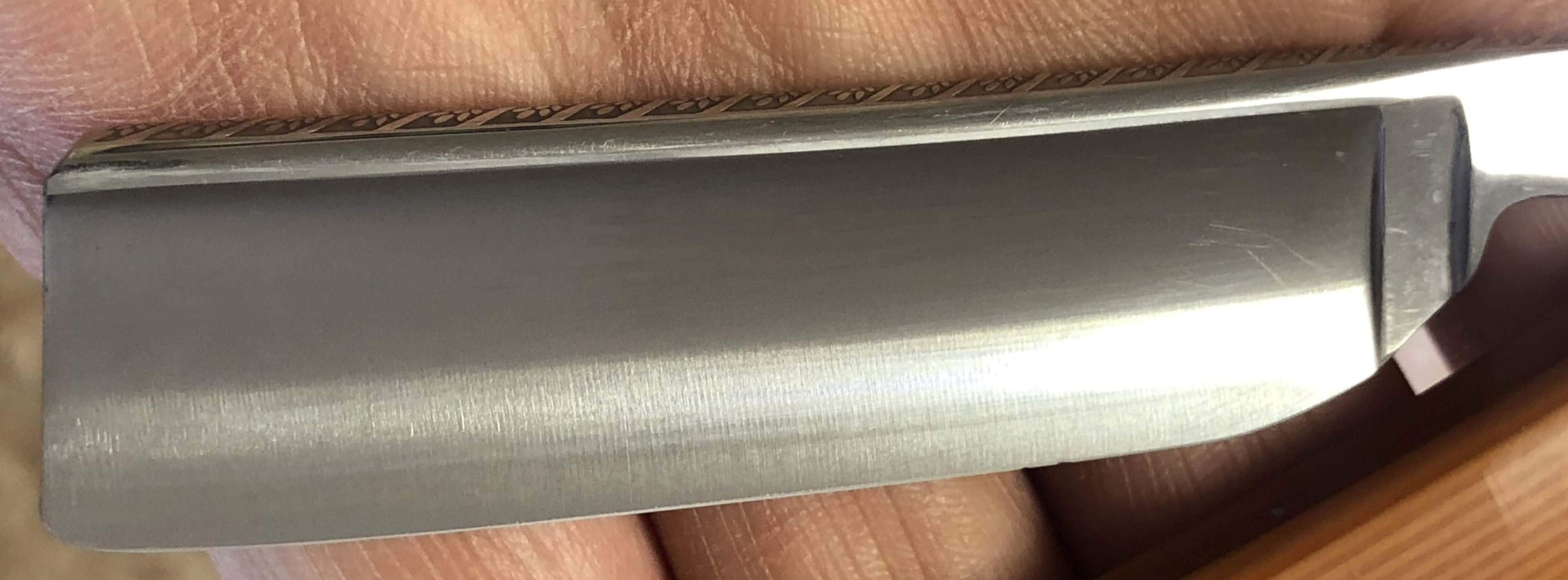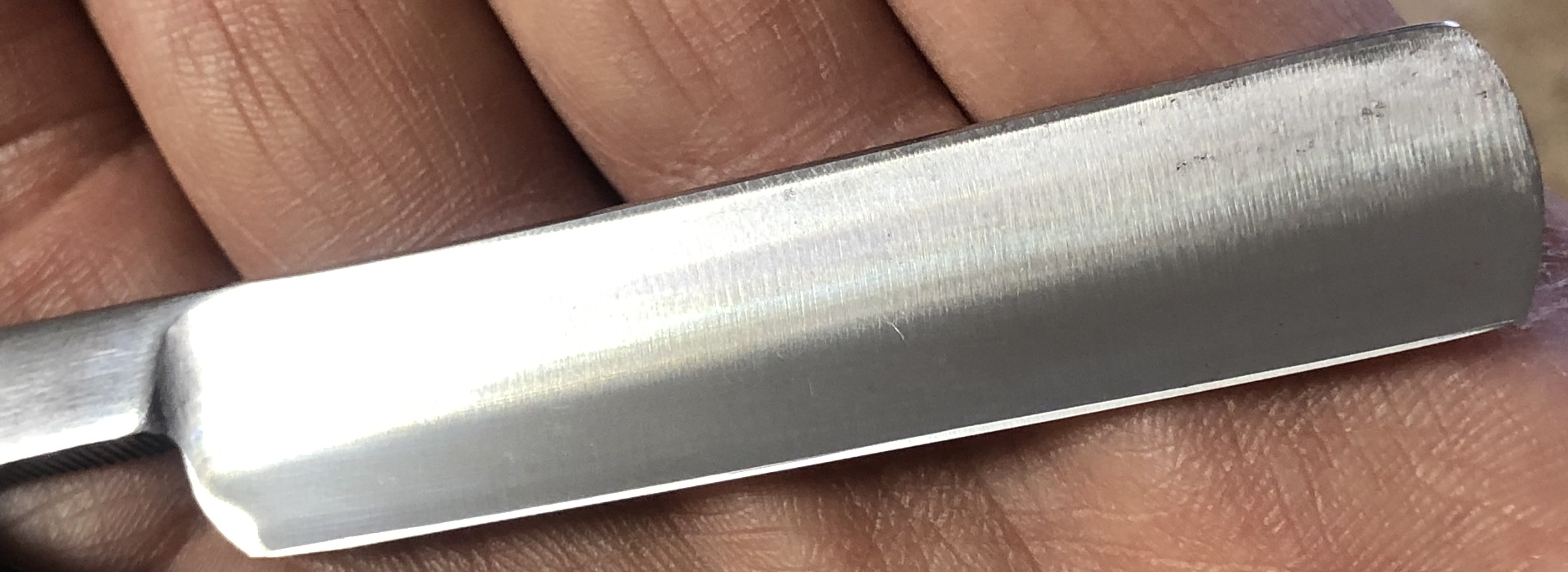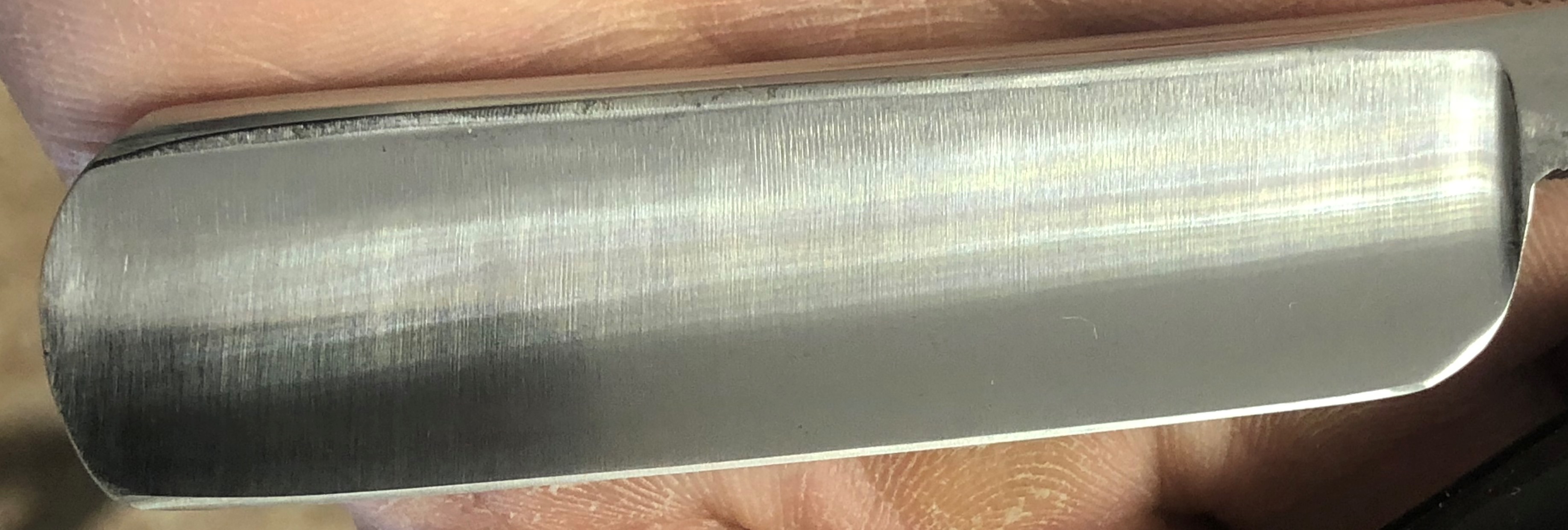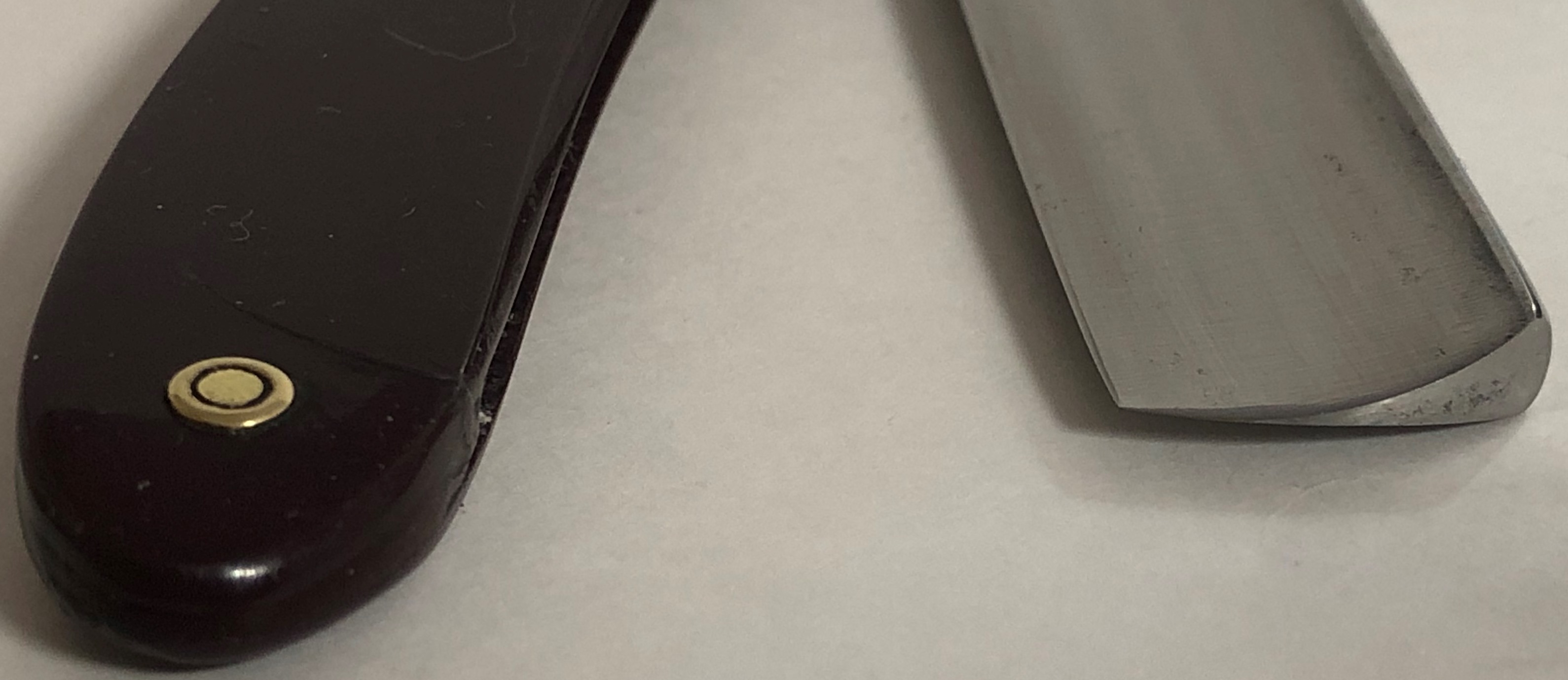 Следов пользования не обнаружено.Разобрал, немного освежил клинок от патины и заново собрал, сохранив оригинальный осевой пин. Идеальная геометрия изготовления. Кромочка равномерна по всей длине. Сталь и кромочка чистые от разного рода дефектов. Форма лезвия и размер бритвы очень хорошо подойдет для новичков и не только.Заточена и готова к бритью.