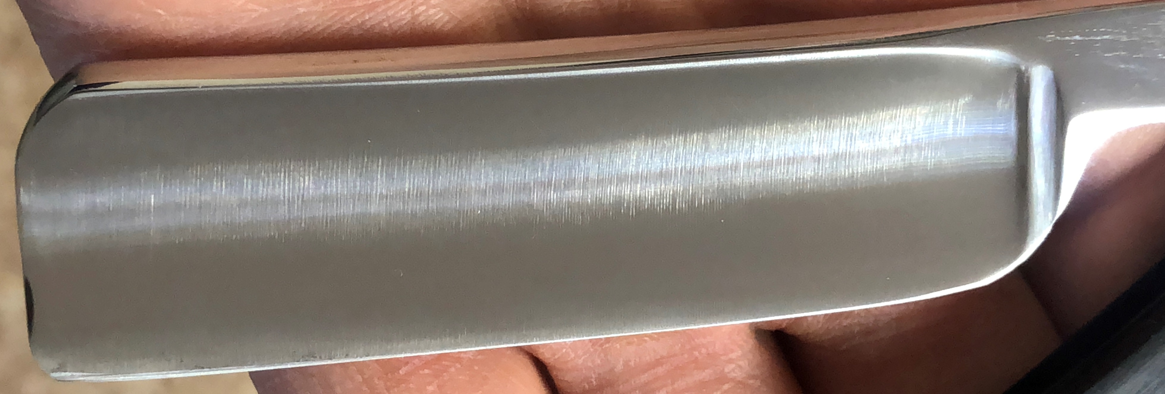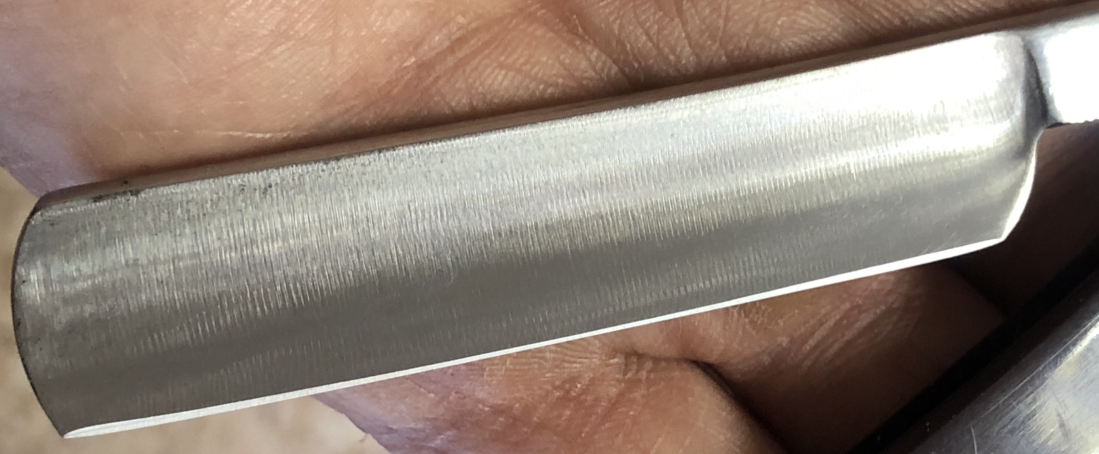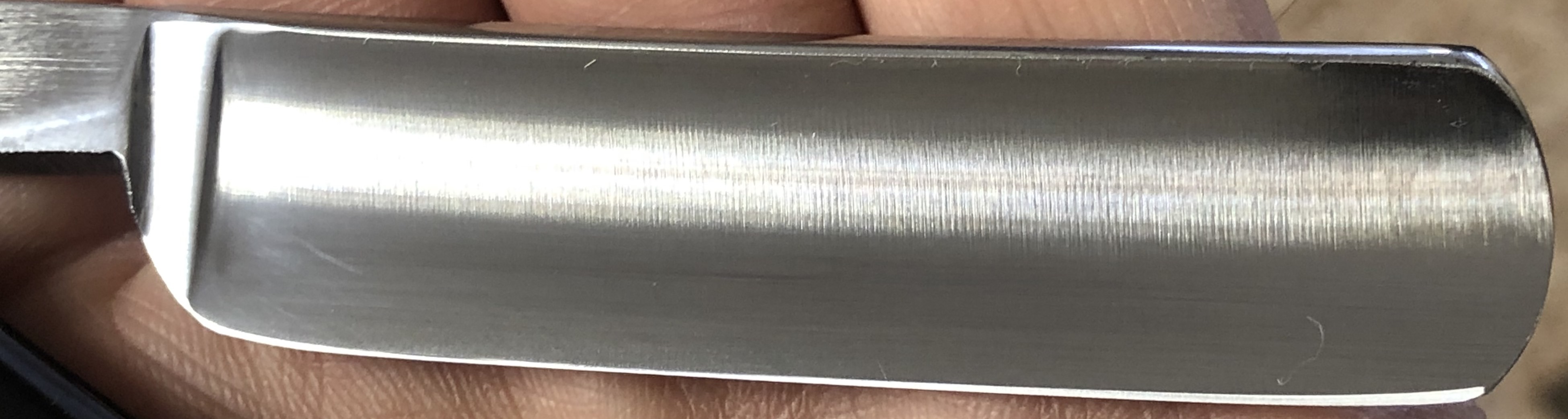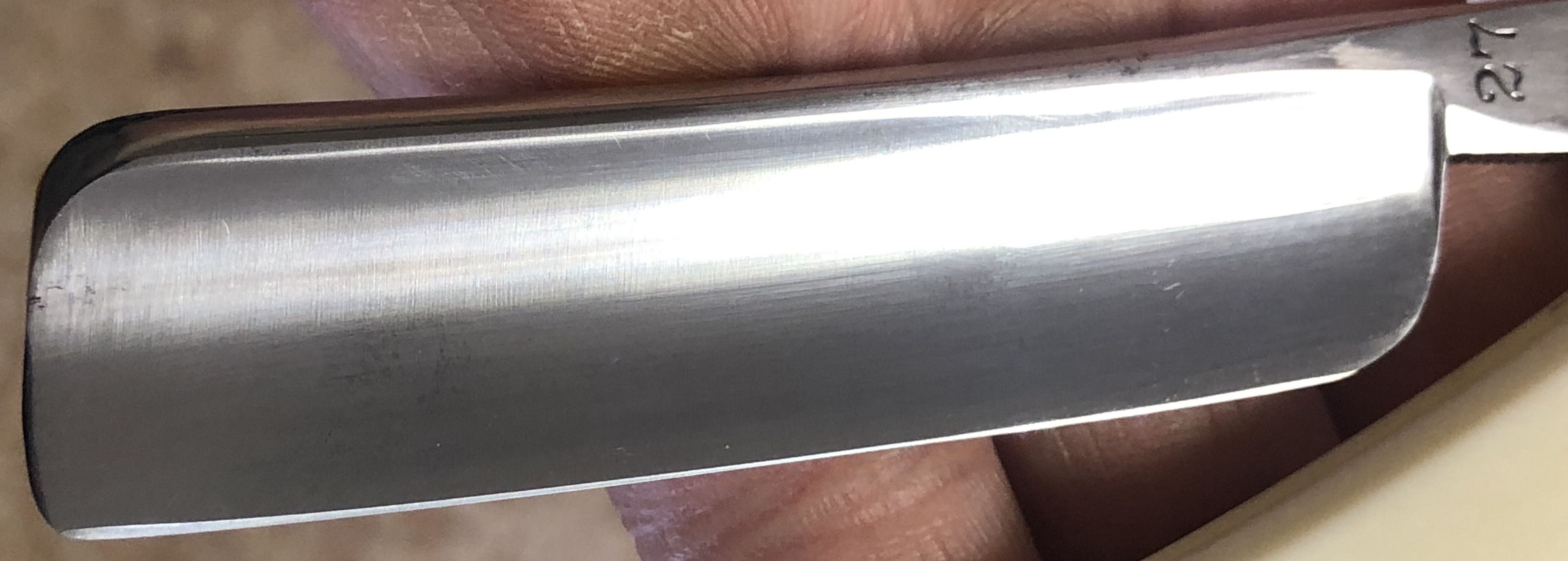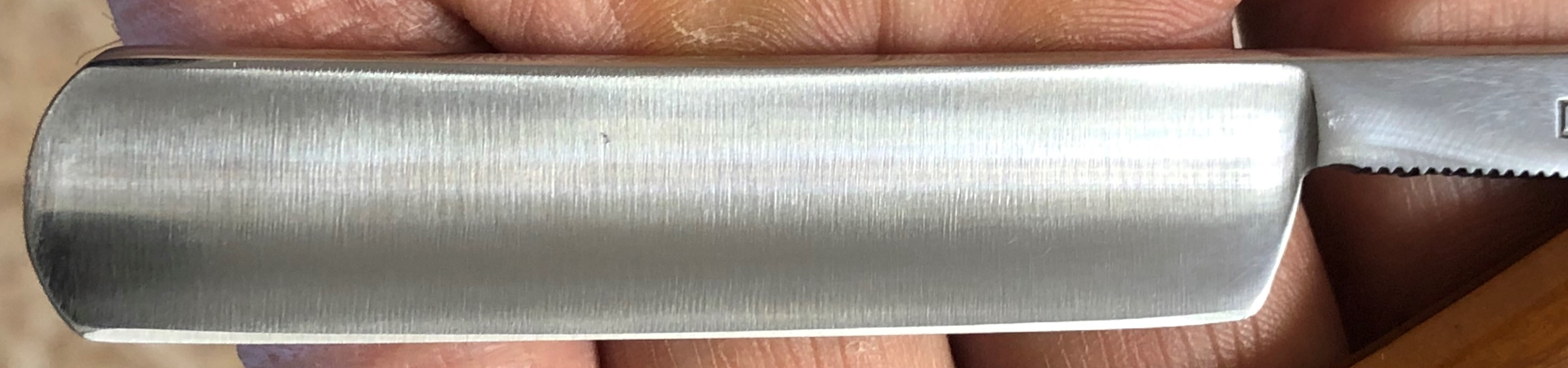 Следов пользования не обнаружено.Разобрал, немного освежил клинок от патины и заново собрал, сохранив оригинальный осевой пин. Идеальная геометрия изготовления. Кромочка равномерна по всей длине. Сталь и кромочка чистые от разного рода дефектов. Форма лезвия и размер бритвы очень хорошо подойдет для новичков и не только.Заточена и готова к бритью.