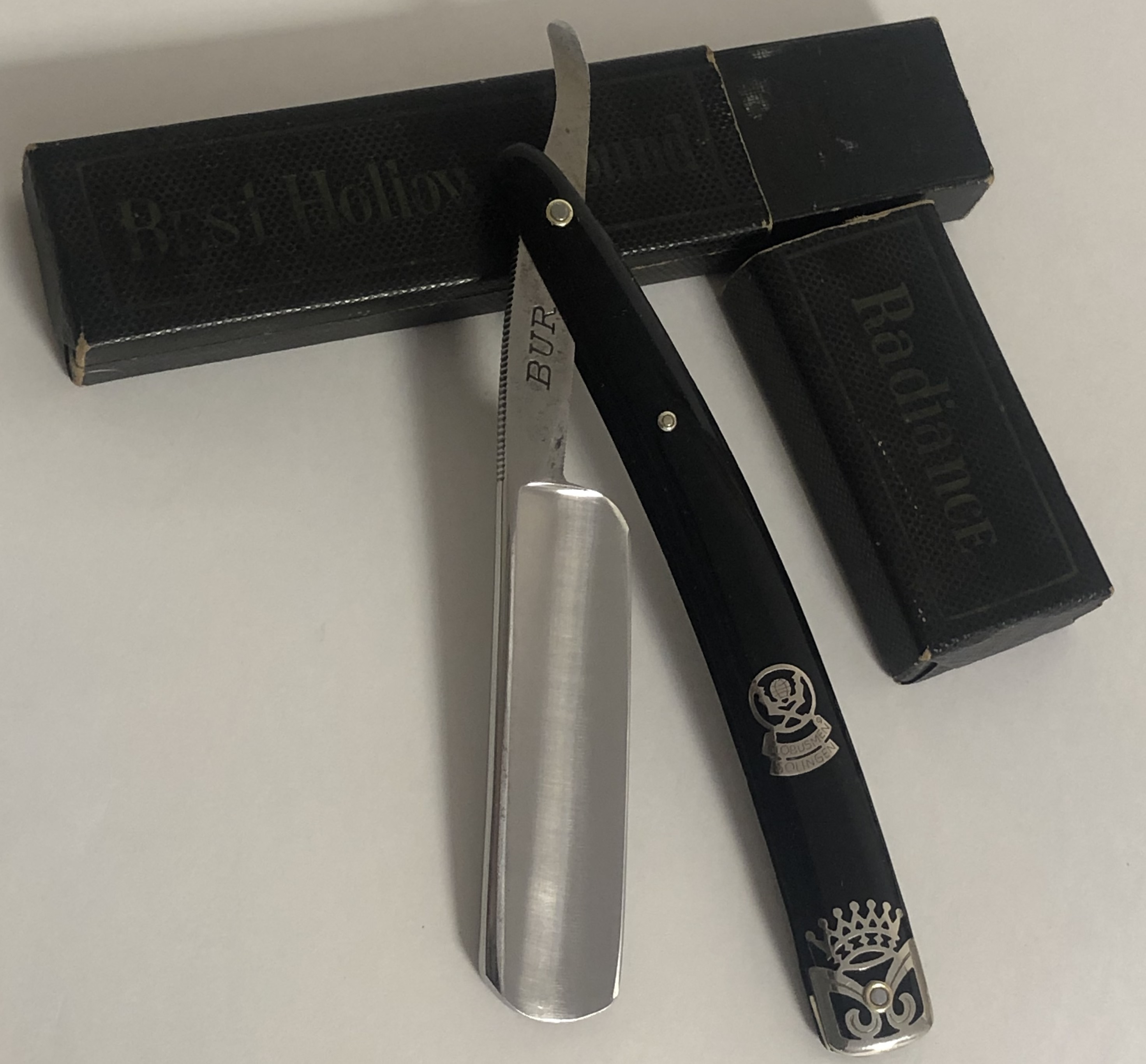Середина прошлого века производство.Самая крупная и мощная модель..Идеальное состояние, без следов пользования. По всей видимости в пользовании не была.Перебрал бритву, заменив пины на немецкие дву-цветные втулки, с добавлением внутренних шайб.Освежил клинок от патины, на самых тонких абразивах и умеренно отполировал.В районе эрля убрал остатки ржавчины.С обратной стороны штамп был изначально плохо пробит, а не результат чистки.Сталь и кромочка чистые от разного рода дефектов. Идеальная геометрия клинка:кромочка равномерна по всей длине и еле заметна. Прекрасный и редкий экземпляр для любой коллекции! Заточена и готова к бритью.