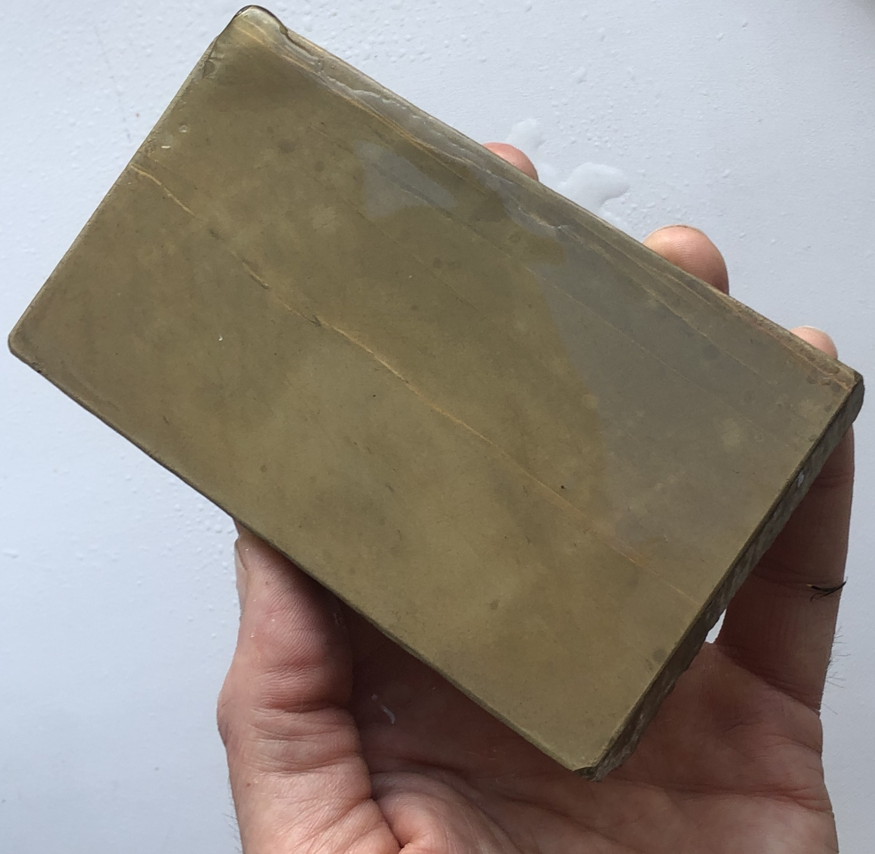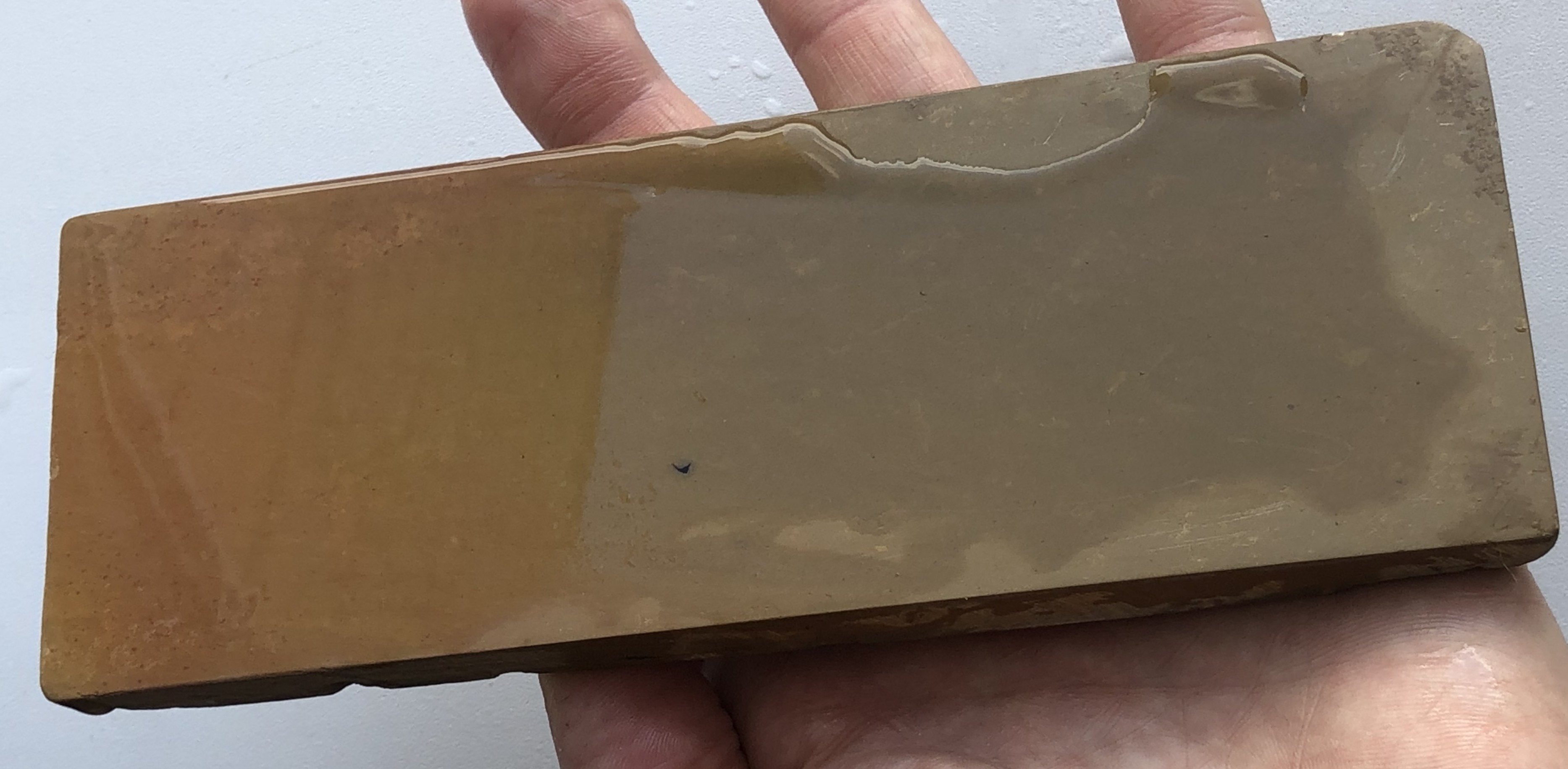 Камень примерно 4 по твердости.Если с твердой нагуркой работать, то немного выделяет суспензию.Прибыл из японской парикмахерской.По всей видимости на финиш или предфиниш пойдет.камень гладкий, тонко работает, без включений и паразитных включений.Можно подклеить на деревянную основу и пользоваться.