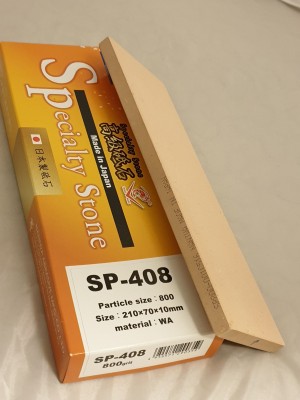 Продаётся от S&T62. Камень заточный синтетик Naniwa 800 грит. С небольшим пробегом, без трещин и прочих дефектов. Был куплен с США в магазине Ллина Абрамса. Продается в связи с переходом на Чосера 1к. Был притерт одной стороной на порошке карбида кремния. На двух фото показаны обе стороны камня. Сейчас толщина 9,6+мм из 10 исходных.