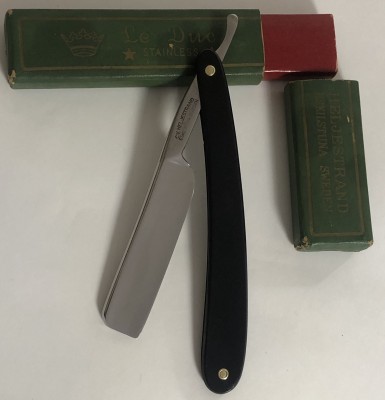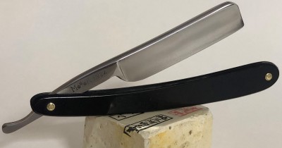 Эффектная немка, в состоянии близком к идеальному. Разобрал, немного освежил клинок , умеренно отполировал и снова собрал, с сохранением оригинальных пинов.Идеальная геометрия клинка. Кромочка равномерна по всей длине. Сталь чистая от разного рода видимых дефектов.Очень удобная бритва прежде всего для новичка.Заточена и готова к бритью.