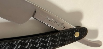 Бритва также в прекрасном состоянии для своих лет. Также была разобрана и приведена в порядок.Был убран небольшой скол в 0,5 мм, поэтому тут полотно немного Уже.По всей видимости эти две бритвы были из одной партии, так как характер нанесения штампа на обратной стороне похожи между собой. Небольшая непроштампованность имеется.Идеальная геометрия.Кромочка равномерна по всей длине.Сталь чистая.Бритва красивая, тяжёлая, с отличной сталью, способную выдавать чистое и мягкое бритье. Проверено лично..Заточена и лично протестирована.Родной коробочки не имеется.