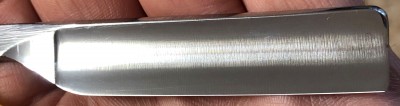 Бритва находится в состоянии приближённому к идеальному.Без следов пользования.Разобрал, немного освежил полотно на самых тонких абразивах и заново собрал. Очень красивая, эффектная оправа будет в самый раз такой бритве.Сталь чистая, без видимых дефектов.