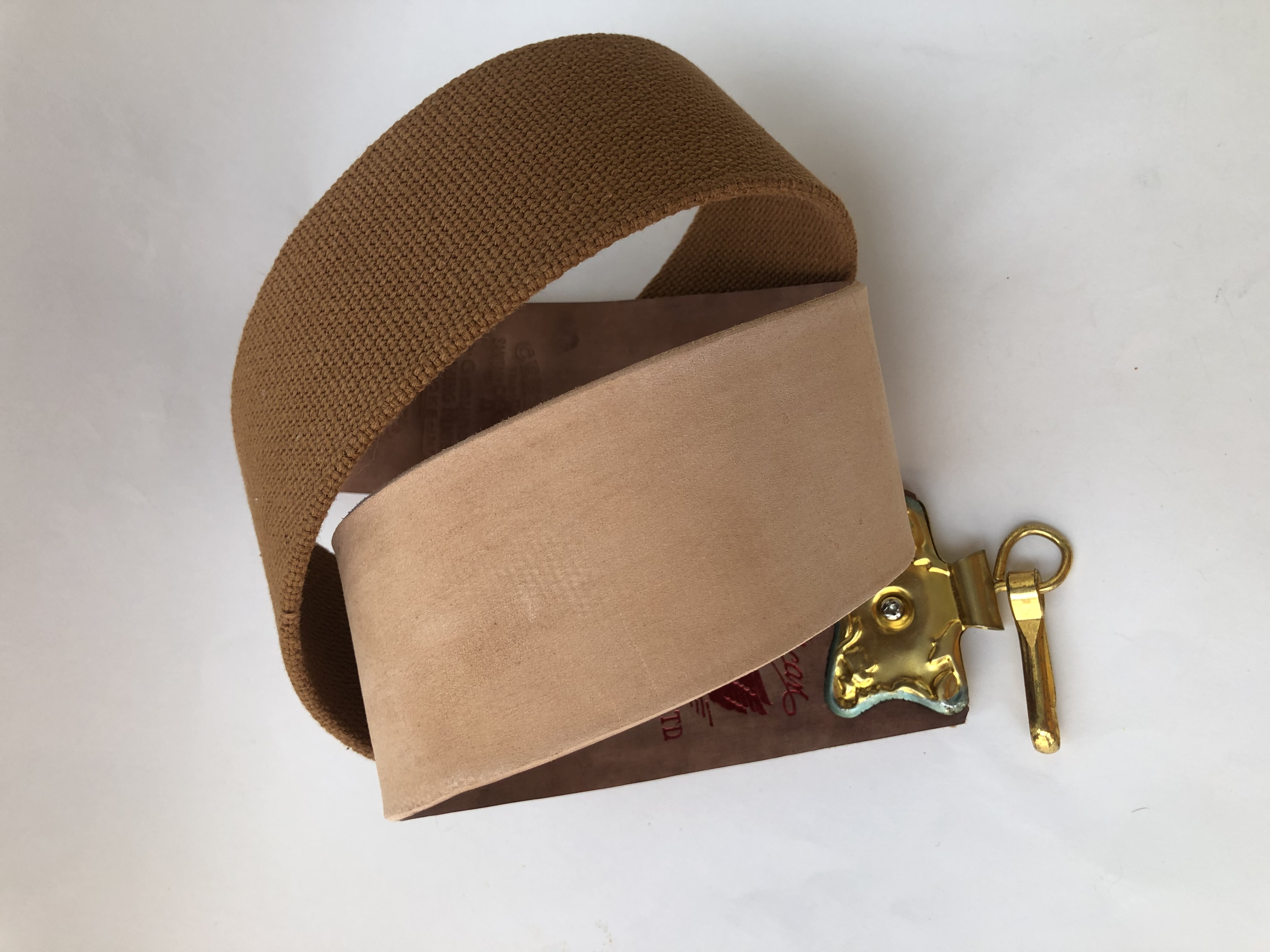 Кожа лошади исключительного качества отделки:светлая, мягкая, эластичная, без прожилок, порезов, царапин(за исключением небольшой вмятинки, которая со временем, от работы должна выправится).Кожа плотная, не такая как у ремней Канаяма и примерно соответствует 80000-90000 модели. От постоянных правок умеренно плотная кожа размягчится и будет работать тоньше.Хотел бы отметить достаточно редкую ширину полотна, что соответствует ремням для профессионального пользования.Вторая стропа-льняной холст умеренно мягкий и не требующий дополнительной подготовки.