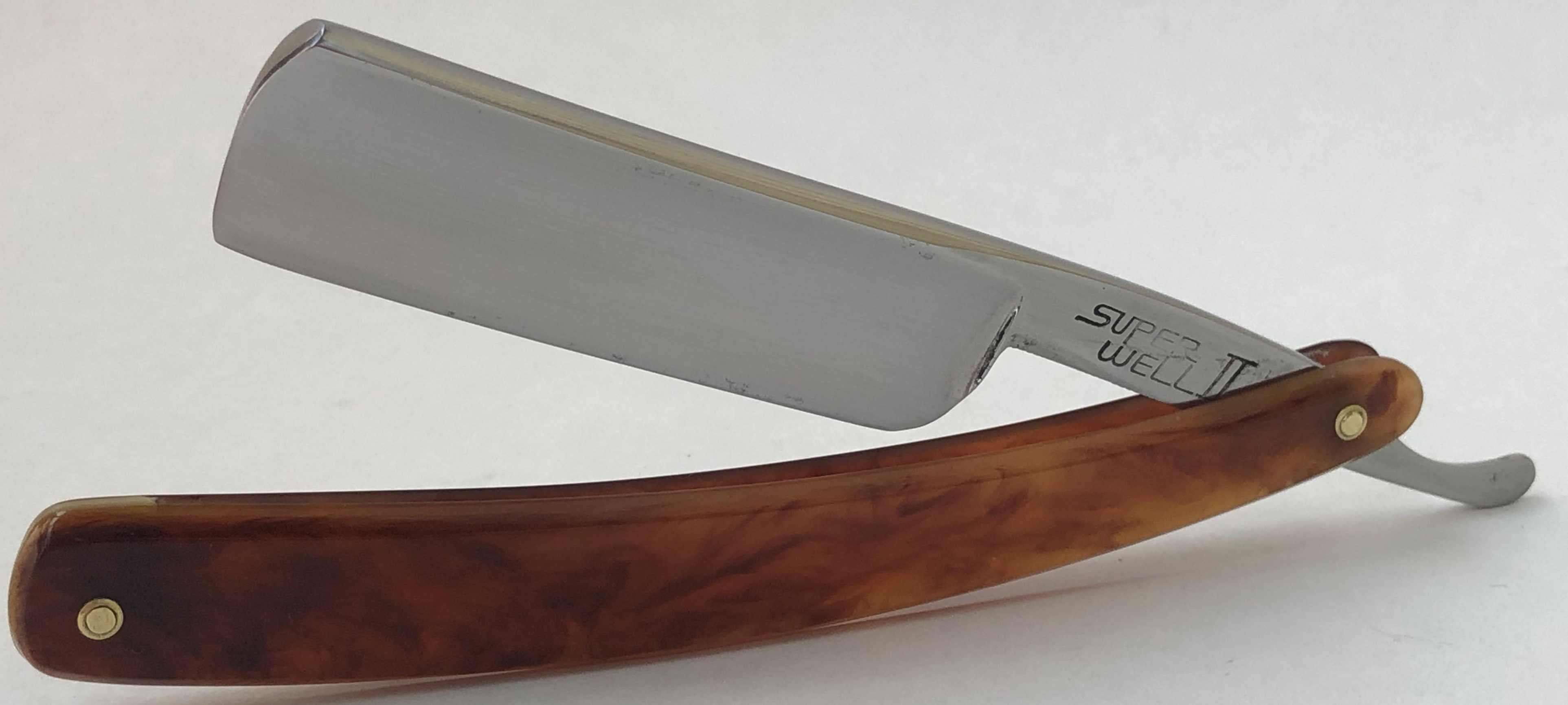 Бритва в хорошем молопользованном состоянии. Была разобрана,почищен район осевого пина и снова собрана. Был небольшой дефект слесарки у пятки,который в меру своих возможностей попытался исправить.Кромочка равномерна по всей длине.Оригинальная пластиковая оправа также в очень хорошем состоянии.