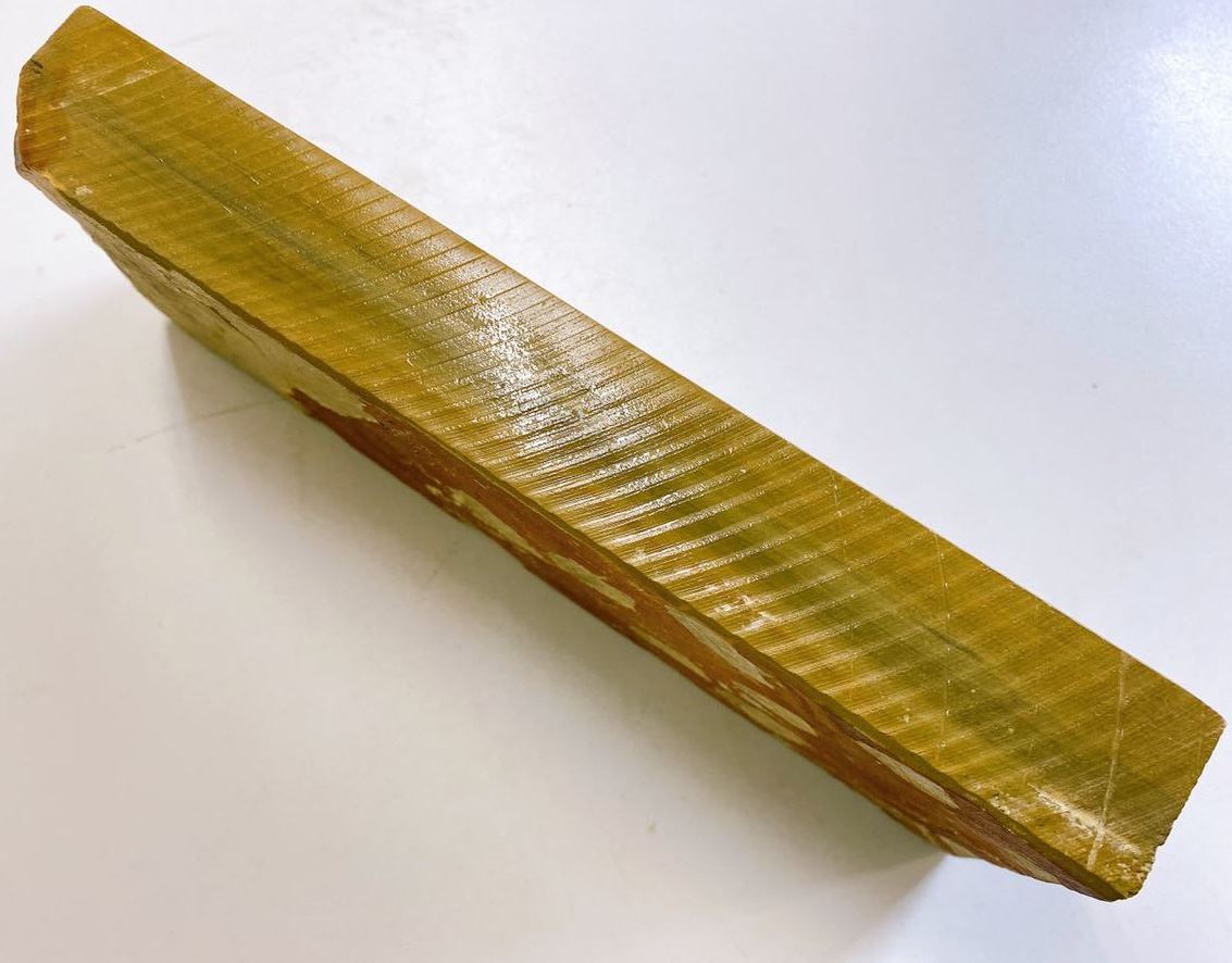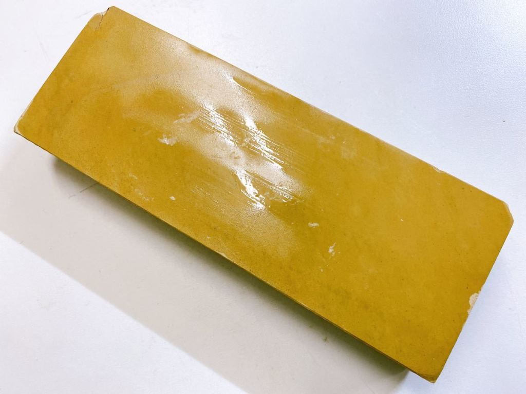 Камень твердый, предназначен для доводки и тонкой доводки опасных бритв, с применением нагура.Практически не выделяет собственную суспензию, но не такой"стеклянный", как камни с очень большой твердостью.Судя по достаточно большой выработке камнем долго пользовались, что говорит об очень хорошем качестве.Рабочая поверхность гладкая, без паразитных дефектов.Быстро выглаживается и начинает работать более тонко.Заводской, фирменный торцевой распил, плюс эффектная необработанная корка с обеих боков камня.Камушек небольшой ширины, но вполне годен для работы с полноразмерными бритвами, хотя идеальный вариант-это работа с классическими камисори,либо с коротышами.Но, для пользователя-любителя, не имеющего большого количества бритв, но желающего самостоятельно освоить все премудрости заточки и тонкой доводки бритв, этот недорогой вариант будет очень неплох.
