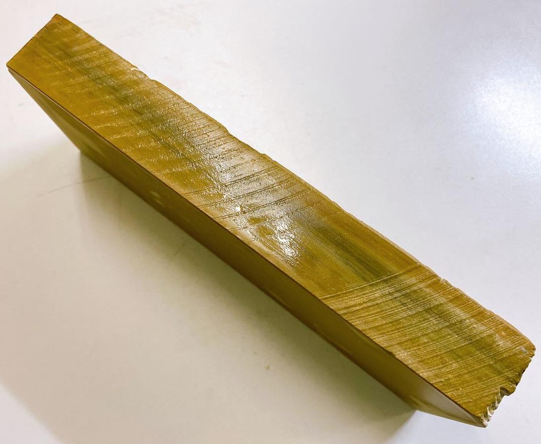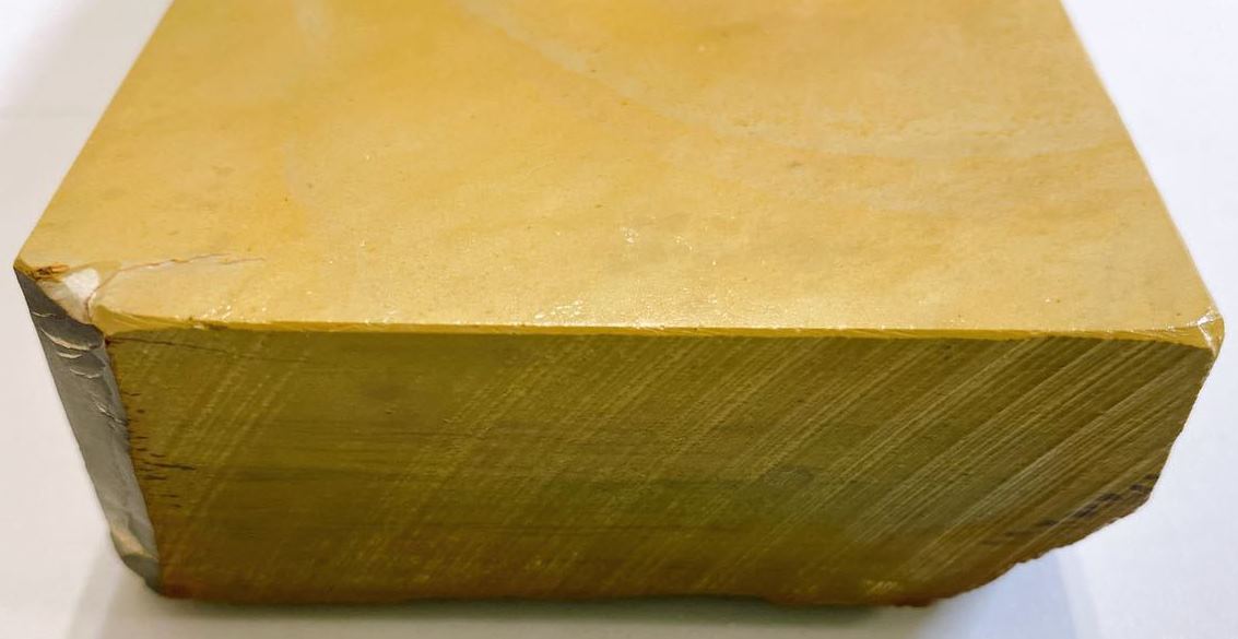 Высококачественный бритвенный финишник, старого распила. Характерный, фирменный торцевой распил.При намокании поверхность камня приобретает красивый желто-зеленый оттенок. На сухую камень ближе к желто-серому.Рабочая сторона камня притерта и не имеет критичных включений и дефектов.После притирки поработал с несколькими бритвами , с использованием нагура разной зернистости, после чего рабочая сторона камня стала "зеркалить". И со временем камень начнет работать ещё тоньше.