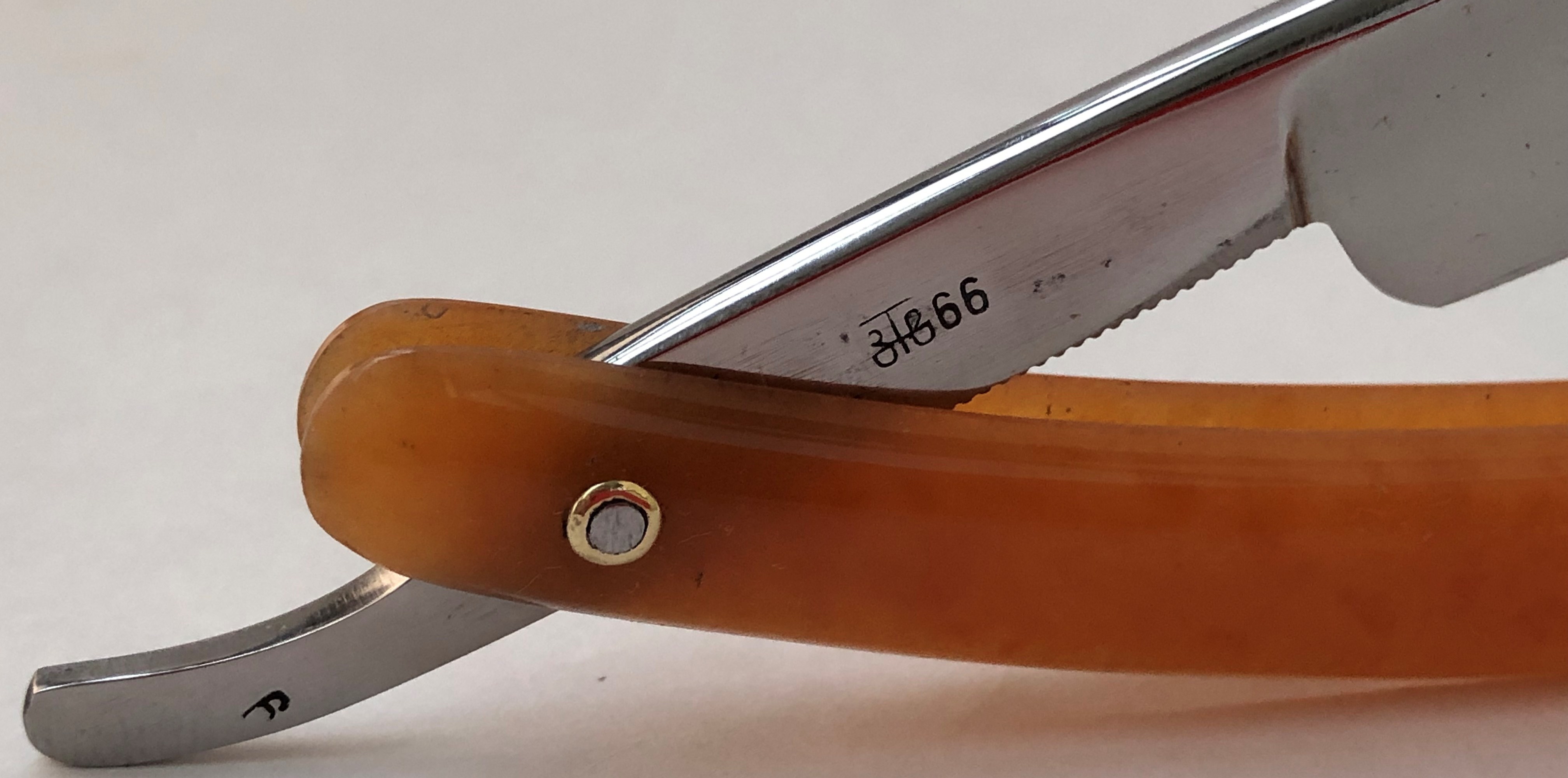 По всей видимости бритва в пользовании не была, но нуждалась в косметической чистке и полировке клинка. Была разобрана и заново собрана, с заменов оригинальных медных пинов на немецкие втулки. Ручка оригинальная и похожа на вачские оправы 40-х годов. Кромочка равномерна по всей длине. Сталь чистая от разного рода видимых дефектов. Заточена и готова к бритью. Не пропустите реально редкую вещь.По крайней мере за 10 лет мне такая встречается впервые.