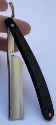 Ширина полотна-21 мм. Толщина обушка-6.3 мм. Форма лезвия-1/2 клин. Углеродистая , шведская сталь, как наиболее удачная для производства бритв. Бритва в очень хорошем и пользованном состоянии.Полотно было приведено в порядок и умеренно отполировано.Кромочка равномерна по всей длине. Сталь чистая от разного рода видимых дефектов.Тяжёлая.Заточена и готова к бритью. Цена-12500 р с доставкой.[/b][/QUOTE] ПРОДАН Spoiler Show Spoiler Show
