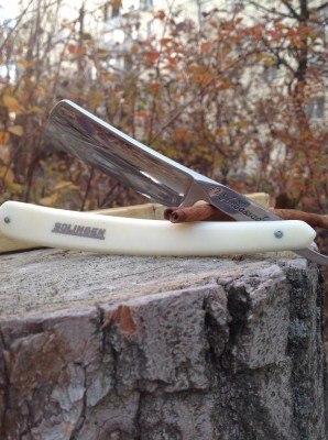 Ручка родная, в прекрасном состоянии, клинышек кость. Нижние пины от Егора. Полотно в хорошем сохране. Кромочка- ниточка! Длина режущей кромки 83 мм!!! Заточка как всегда N*X*S Spoiler Show Серьезный немец. Ширина полотна 6\8. Есть небольшие цяточки под обушком. Родной. кофр. Интересная форма. Бритье на "5+" Продана. Spoiler Show