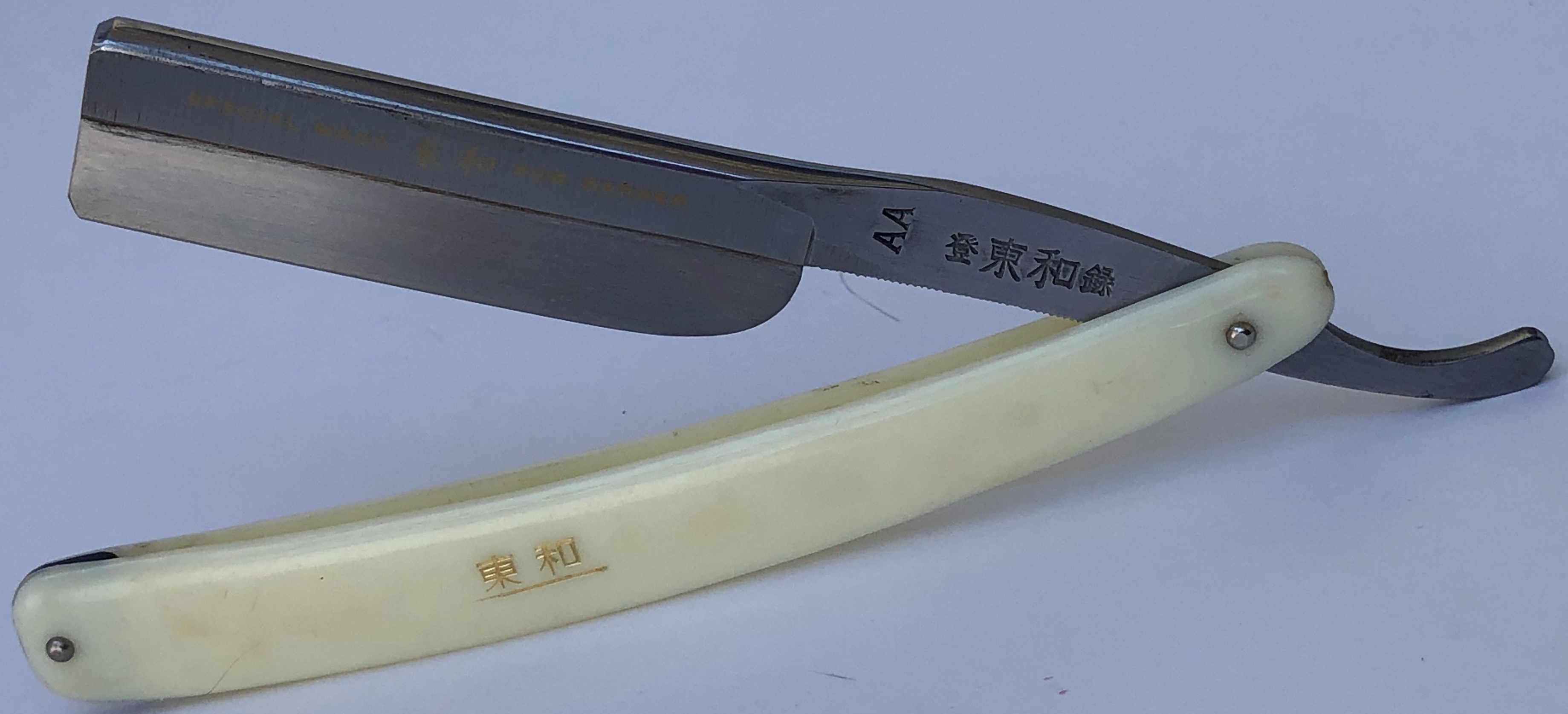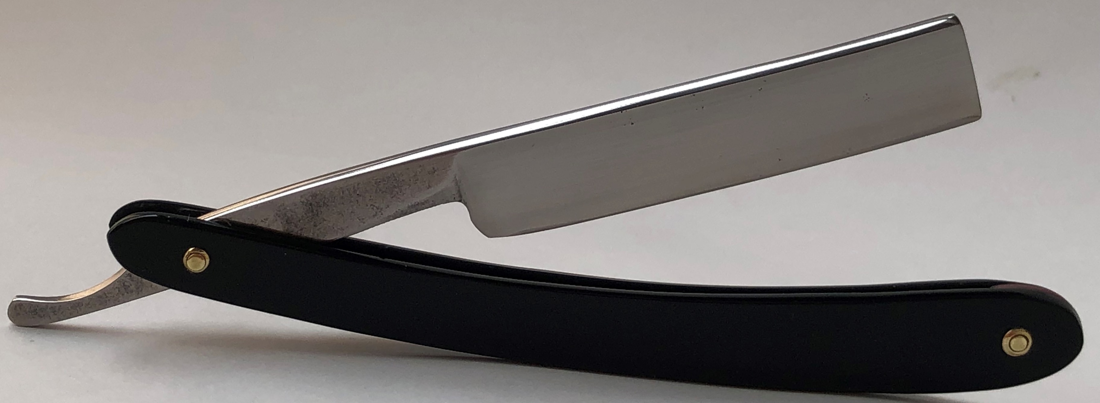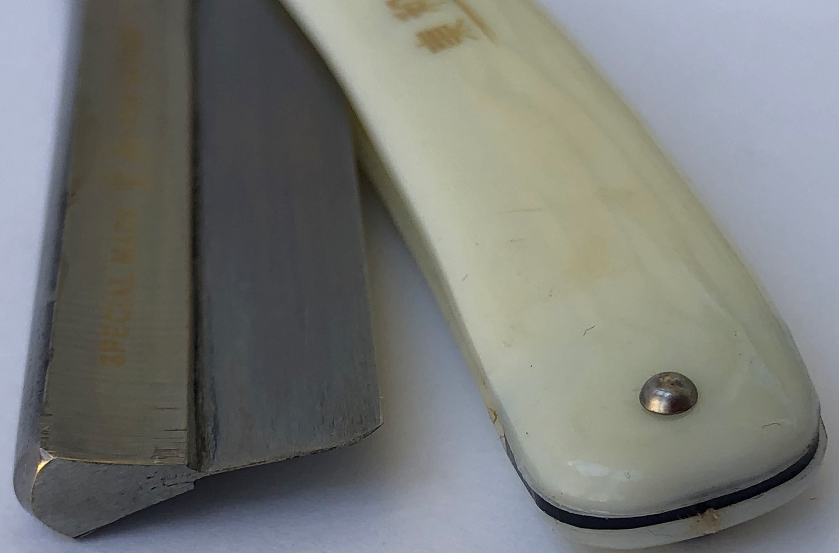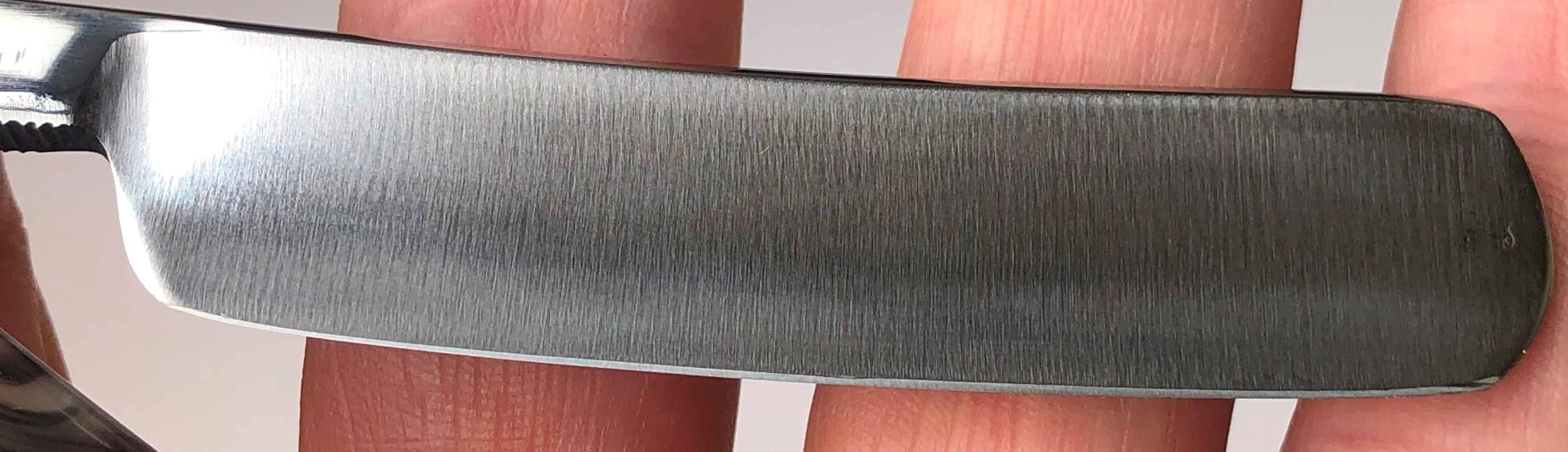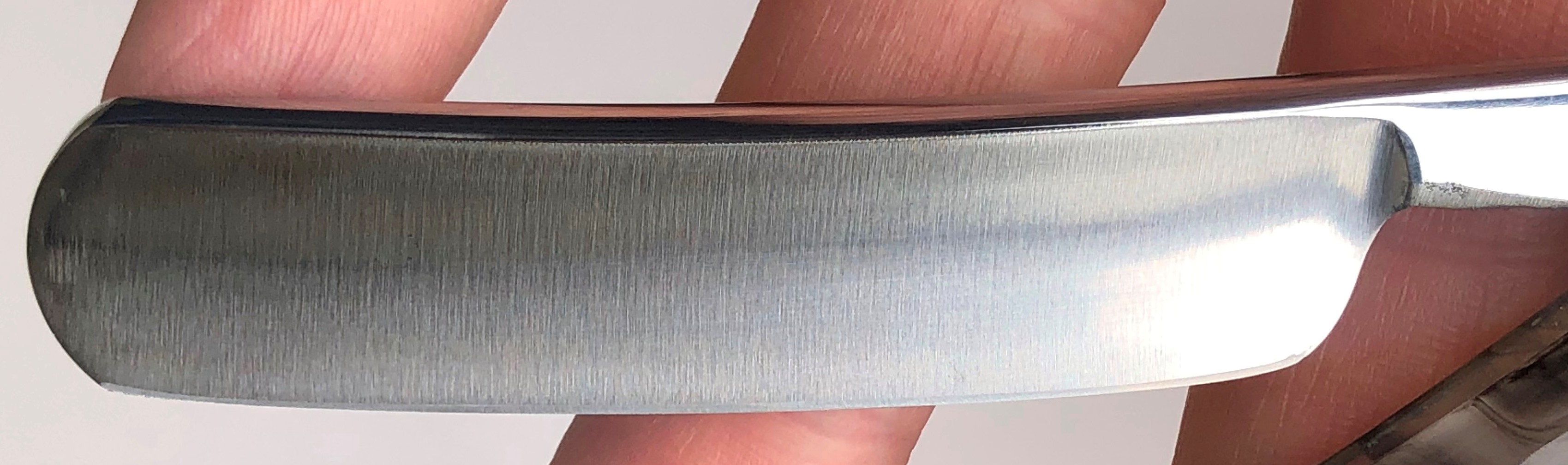 Бритва в пользовании не была.Клинок в идеальном состоянии.На самых тонких абразивах был освежен металл,с повторением "родного" гринда, а также умеренно отполирован.Оригинальную ручку заменил на эффектную оправу от японского послевоенного донора.В отличие от оригинала сейчас бритва смотрится намного интереснее.Само полотно чистое от разного рода видимых дефектов. Идеальная геометрия:кромочка равномерна по всей длине.Двух-цветные японские старинные пины, с добавлением внутренних шайб, для порядка.Отличный и недорогой вариант для новичка. Не пропустите.