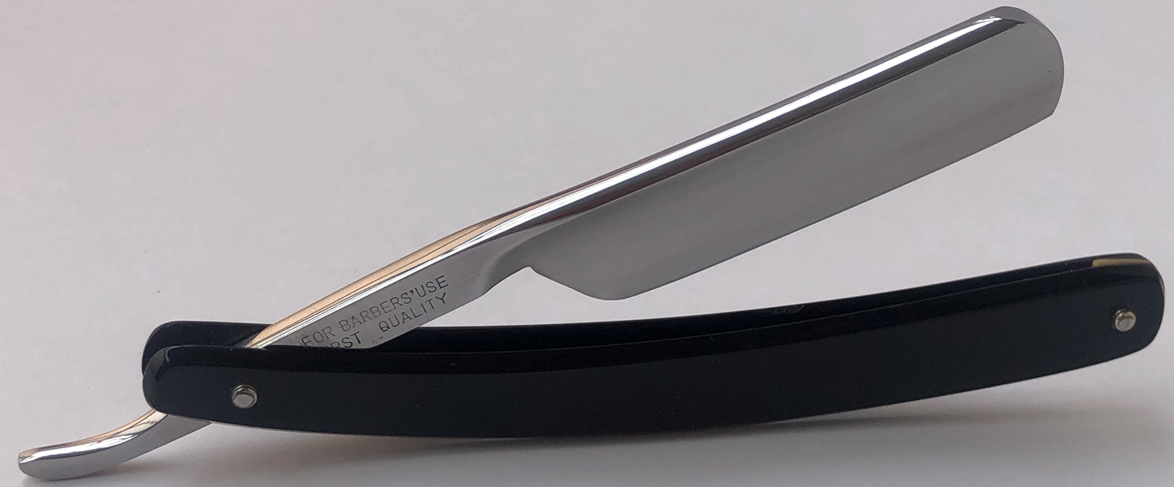 Бритва в очень хорошем состоянии.Высококачественный, профессиональный парикмахерский инструмент.Была разобрана, немного приведена в порядок,умеренно отполирована и снова собрана.Без активных следов пользования.Сталь и кромка чистые от разного рода видимых дефектов. Идеальная геометрия полотна.Родные пины были перебраны и заново установлены.Удобная форма клинка, с длинным эрлем будет приоритетной именно для новичка, да и не только.Заточена и готова к бритью.