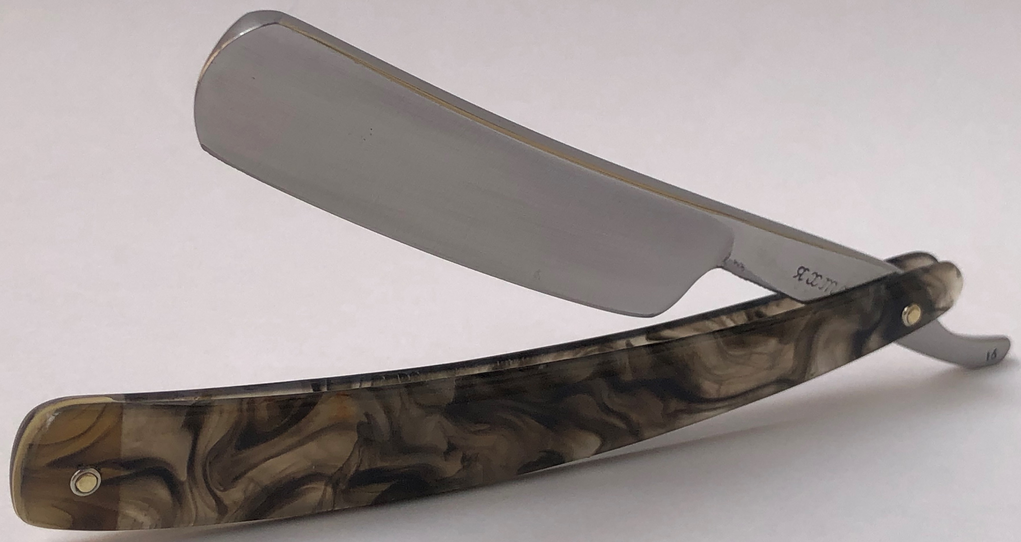 Бритва без следов пользования. Не разбиралась.Красивая, ладная, удобная. Среднего размера. Прекрасно подойдет как для новичка, так и для любого ценителя классического бритья.Такой умеренный размер очень хорошо способен оценить опытный пользователь.Бритва вся в оригинале.Сталь чистая, геометрия клинка идеальная.Заточена и готова к бритью.