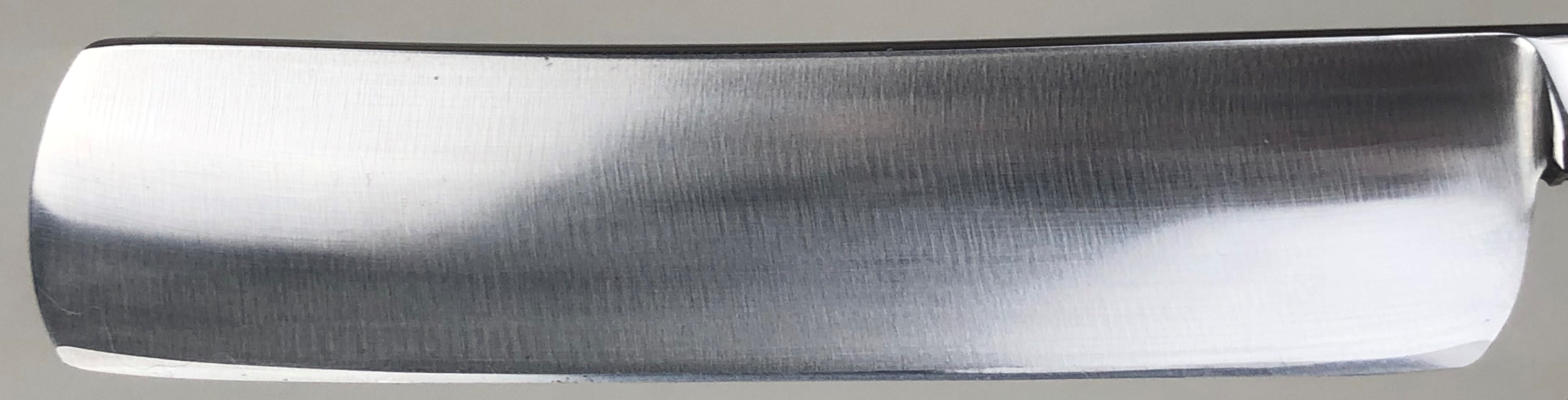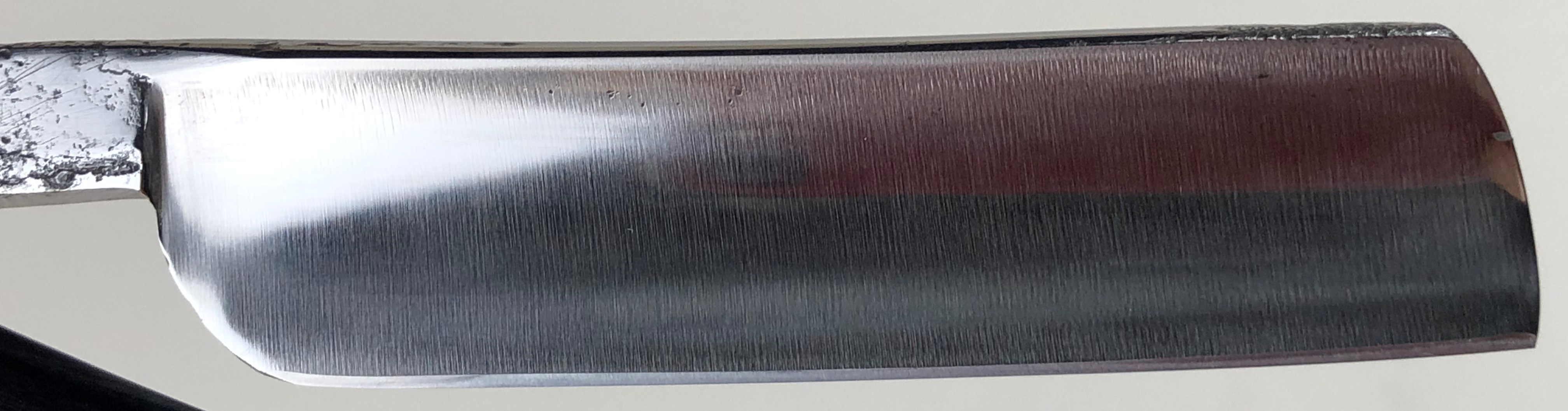 Бритва не разбиралась и не ремонтировалась.Без следов пользования. Оригинальная шлифовка. Полирнул немного, для восстановления былого блеска.Сталь чистая, без дефектов. Идеальная геометрия полотна.Заточена и готова к бритью. Совершенно бюджетный вариант для новичка.