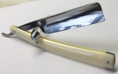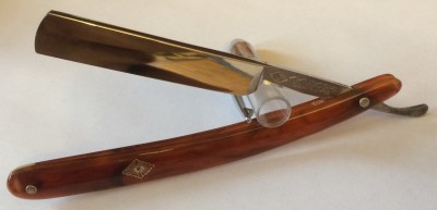 Название списать трудно ибо с французским не дружу. Так что Le MAIRE LE MATRE LEMAIRE LEMATRE В общем как то так Возраст бритвы лет 150 или 160 (мне так кажется Бритва отрегриндена. Ручка сделана из рога и полностью повторяет оригинальную ручку которая была в плачевном состоянии. Бритва заточена с одним слоем изоленты (так как у пяточки слишком узко и если точить без изоленты то там еще сузится а нам этого не надо) Ширина в самой широкой части 19 мм. Клинышек олово. Пины золинген Гринд грубоватый оставлен намеренно ибо 150-200 лет назад зеркало на такой переменной геометрии вряд ли было (зы немножко попортил гринд во время заточки - при заточке на 1000 ке протер воду вдоль полотна и оставил царапки, не кретично но предупредить должен) В общем красота. Цена 10,000 рублей