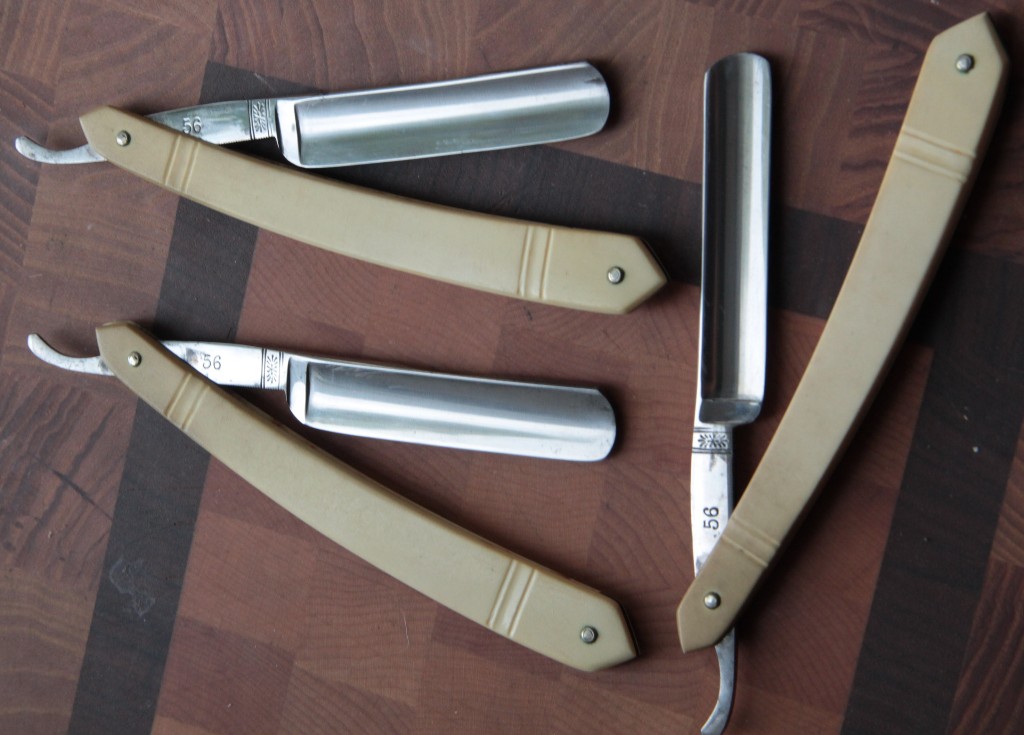 От немецкой фирмы SCHULZE. Ширина полотна-18 мм. Все 7 бритв находятся в очень хорошем состоянии. Тремя бритвами пользовались постоянно, а на остальных четырёх следов пользования не заметил. Бритвы все целые: полотна, оправы. Не разбирались и не ремонтировались. Всё в оригинале. Кожаная коробочка немного разошлась по шву от старости, но спокойно исправляется. Ржавчины нет, за исключением налёта патины. Бритвы продаются целиком, как есть-не точенные и не чищенные. Оставляю возможность повозиться с ними новому хозяину. Вложить душу, так сказать, в свою работу. Самому времени нет этим делом заниматься. Достаточно редкая вещь по нашим временам. Не пропустите. Цена за весь комплект 23000 руб с доставкой.ПРОДАН Spoiler Show Ещё фотки Spoiler Show