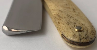 (донор довоенный, примерно 20-30-е годы).Плашки оправы прочные и достаточно толстые,без трещин и дефектов. Природный рисунок кости невероятной красоты.Понятно, что японцы не ставили на свои бритвы (по крайней мере я не видел ничего подобного) ручки из натуральных материалов,но в этот раз захотелось чего то неординарного.Из за свой формы клинка, а также размеров оправы,бритва достаточно тяжёлая и приятно лежит в руке.Бритва заточена и лично протестирована. Бреет прекрасно и без вопросов.