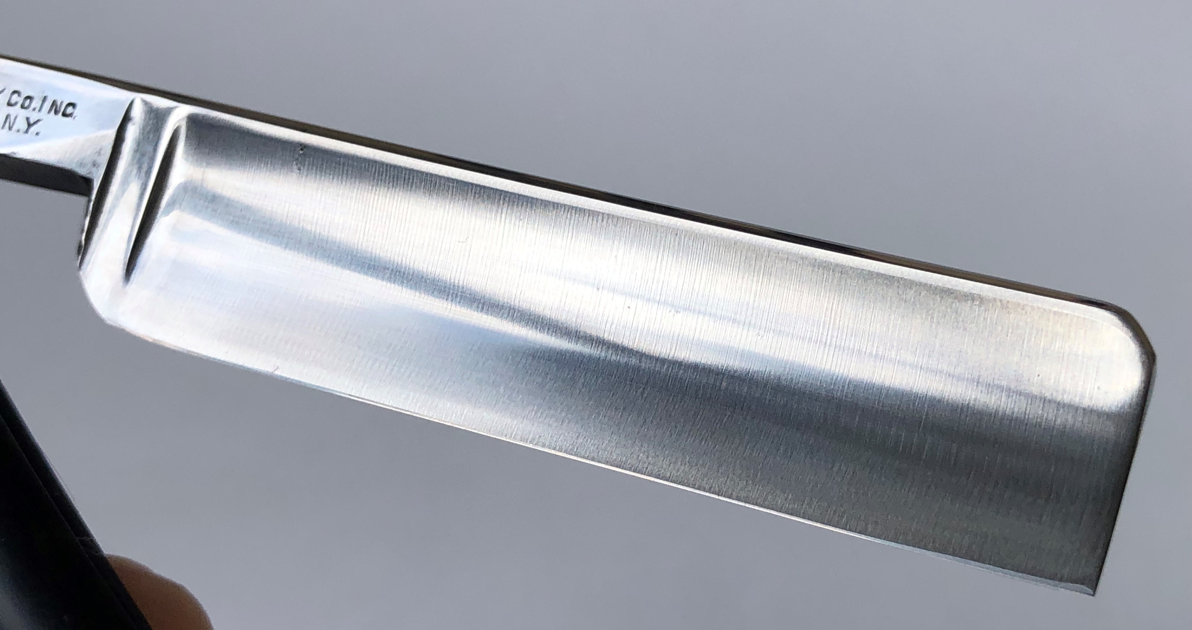 Не часто попадающиеся у меня американские бритвы, но вот эта модель очень неплоха по качеству и состоянию.Бритва была разобрана и немного освежено полотно, с заменой пинов на втулки и добавлением внутренних шайб.По всей видимости бритва в пользовании не была.Идеальная геометрия клинка:кромочка равномерна по всей длине.Бритва заточена и готова к бритью.