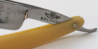 (Честно говоря, у меня нет идей по поводу того, что написано на обратной стороне.Какое отношение имеет немецкий Золинген в происхождении данной модели бритвы, не знаю.Ничего подобного за много лет наблюдения и общения с бритвами у меня не было.Судя по пинам похоже на немецкие, но в остальном все японское.В любом случае, бритва высококачественная и приехала из Японии).