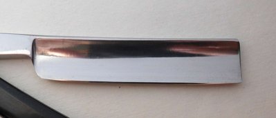 Ручка и пины родные, в отличном состоянии. Бритва приехала ко мне малоточенной. Опробовал ее в бритье - весьма неплохо бреет. Естесственно, заточена и полностью готова к бритью. Ширина бритвы 16.5 мм, толщина обуха 4 мм.