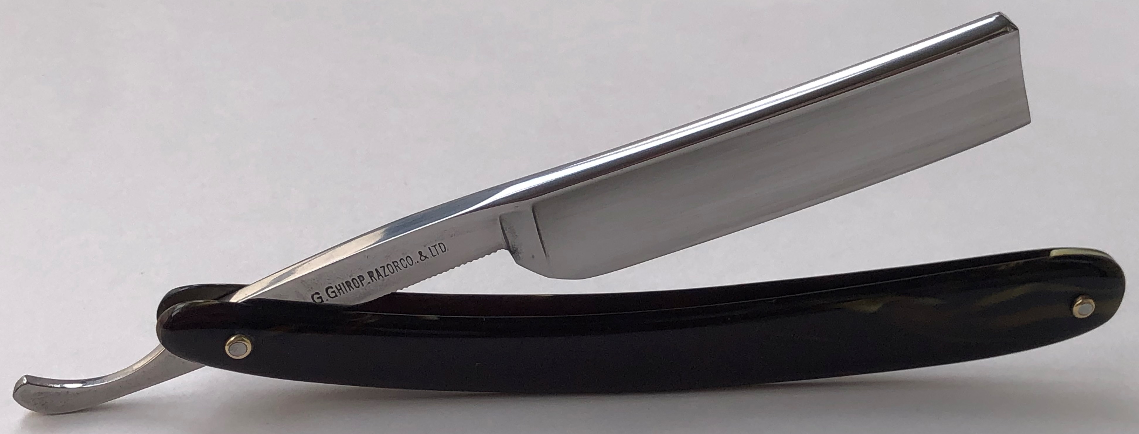 Бритва в хорошем, рабочем состоянии. Была разобрана для добавления внутренних шайб и замены пинов на втулки.Полотно было немного освежено и умеренно отполировано.Кромка равномерна по всей длине.Удобная пластиковая накладка.Бритва идеально подойдет для новичка в качестве стартовой и совершенно недорогой.Высококачественная сталь.Бритва заточена и готова к бритью.