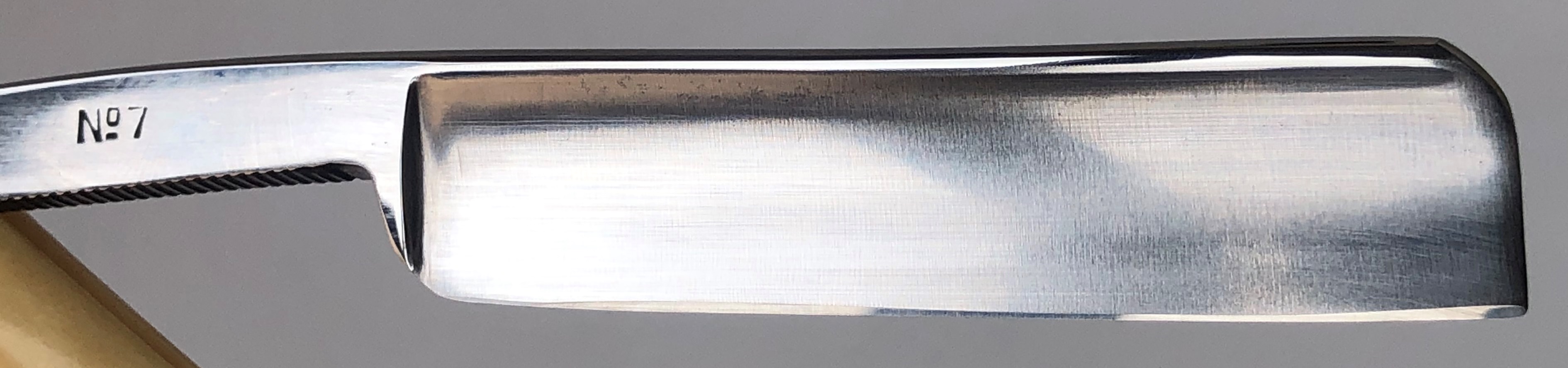 Бритва в пользовании не была и находится в идеальном состоянии.Была перебрана, для добавления внутренних шайб.Больше никаких работ не производилось. Оригинальная шлифовка и полировка клинка. Заводская заточка.Эффектная комбинированная шлифовка.Идеальная геометрия полотна:кромка равномерна по всей длине и еле заметна. Красивая, высококачественная старинная бритва. Не пропустите.Будет заточена и подготовлена к бритью.