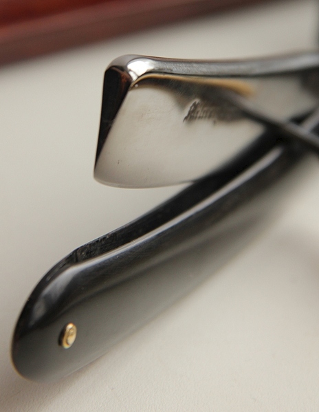 Ничего не разбирал. Роговая ручка без дефектов.. Клин по центру. Лезвие без каких либо проблем, ржавчины и точечной коррозии. Решил оставить благородный налёт патины , для красоты и соответствия внешнего вида бритвы к её возрасту. На мой взгляд бритвой пользовались мало. Гравировка не затронута ни временем, ни абразивами . Очень хорошее состояние.