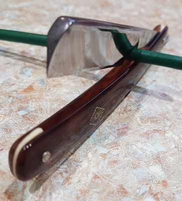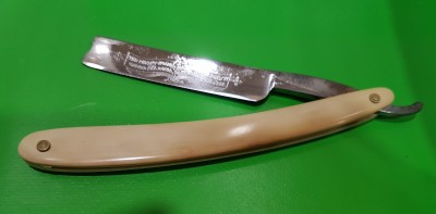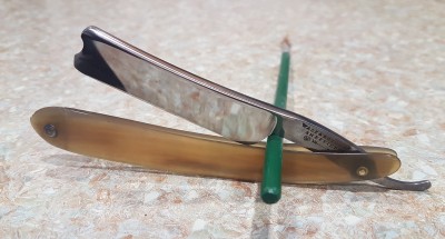 Вторая половина 19 века. Ширина клинка 6/8. Ручка светлый (медовый) рог. Бритва в отличном состоянии приобреталась на форуме. Заточена. Бреет шикарно. Продано. Spoiler Show