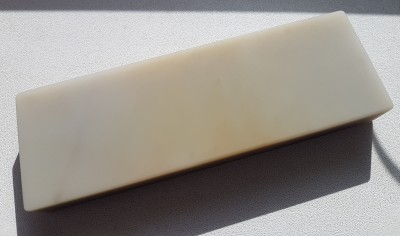 Тюрингский природный сланец. Качество Эшера. Продавец позиционировал данный камень как Эшер.Мотивировал визуальными признаками (спилы торцов, остатки наклеек.) Из старых штолен. Размеры камня 163х39х17. Родной слурик. Обе стороны рабочие. Одна для работы с суспензией, вторая для тонкой доводки. Бархатный ход, прекрасный тактильный отклик. Скорость работы средняя. С камнем отдам самодельный деревянный короб для хранения. Spoiler Show