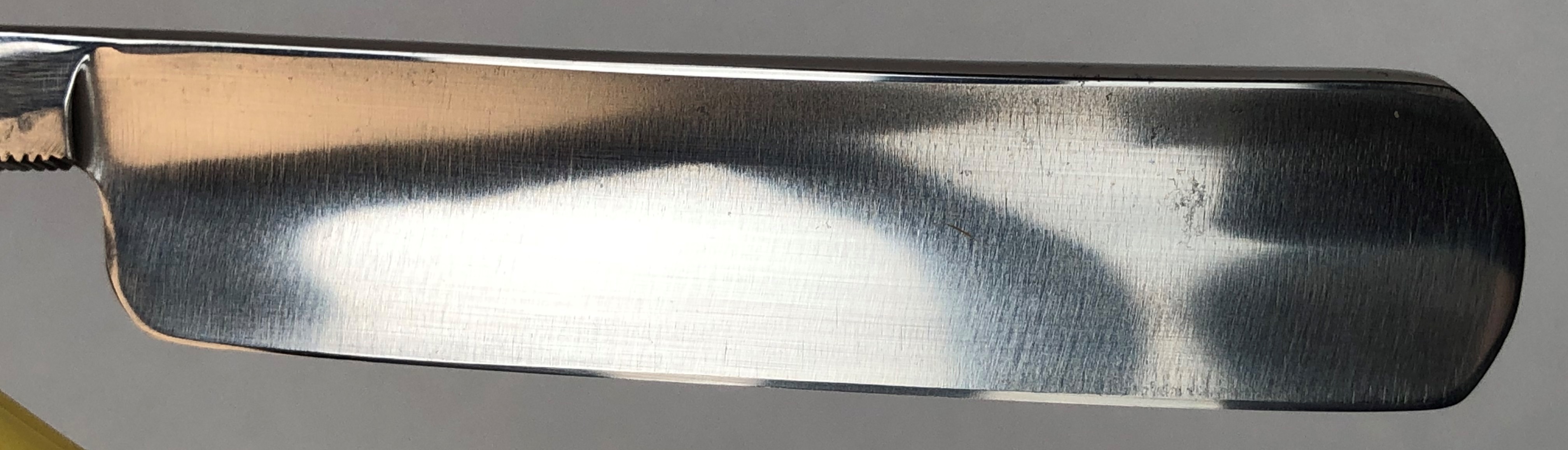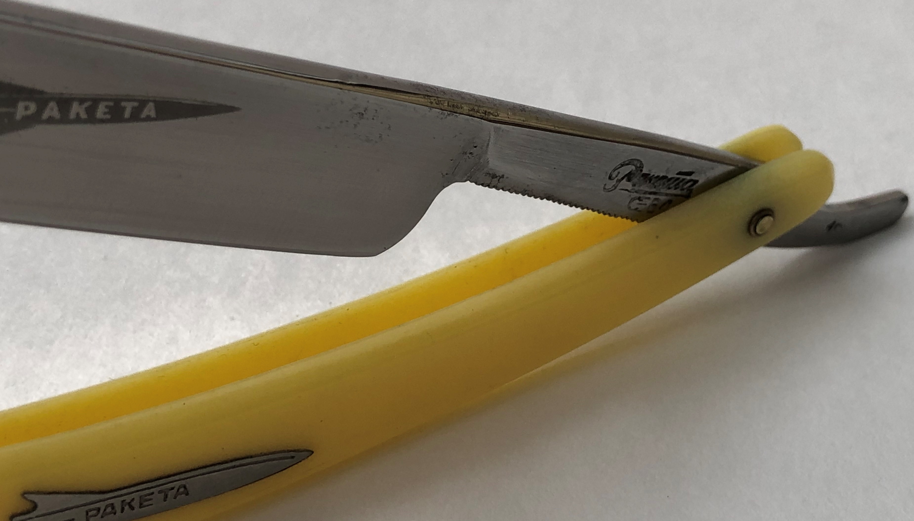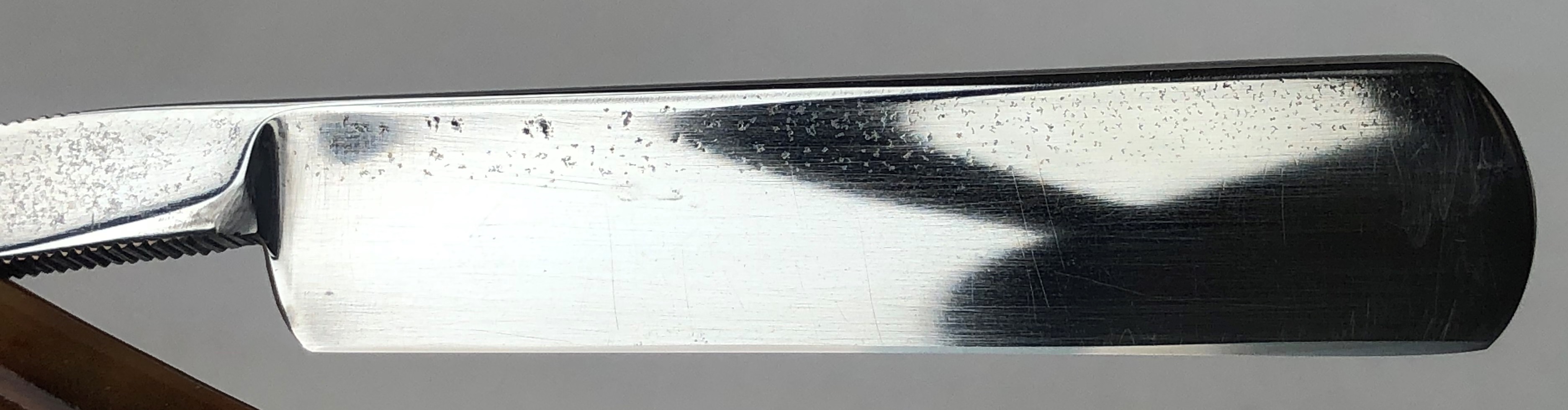 Бритва в хорошем и рабочем состоянии. Не разбиралась и не ремонтировалась.Немного отполировал клинок и все.Аккуратное пользование, хранение и заточка.Само травление чёткое, без потертостей.Кромочка равномерна по всей длине.Бритва для тех, кто не гоняется за коллекционным состоянием, а хочет иметь просто недорогой и рабочий инструмент..