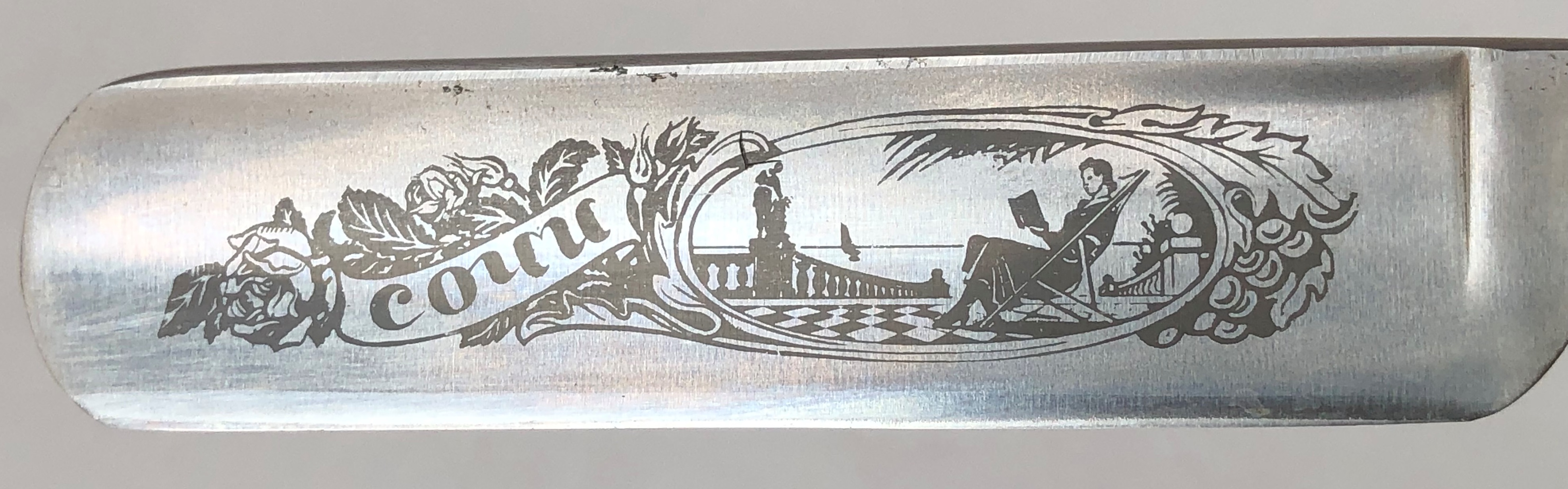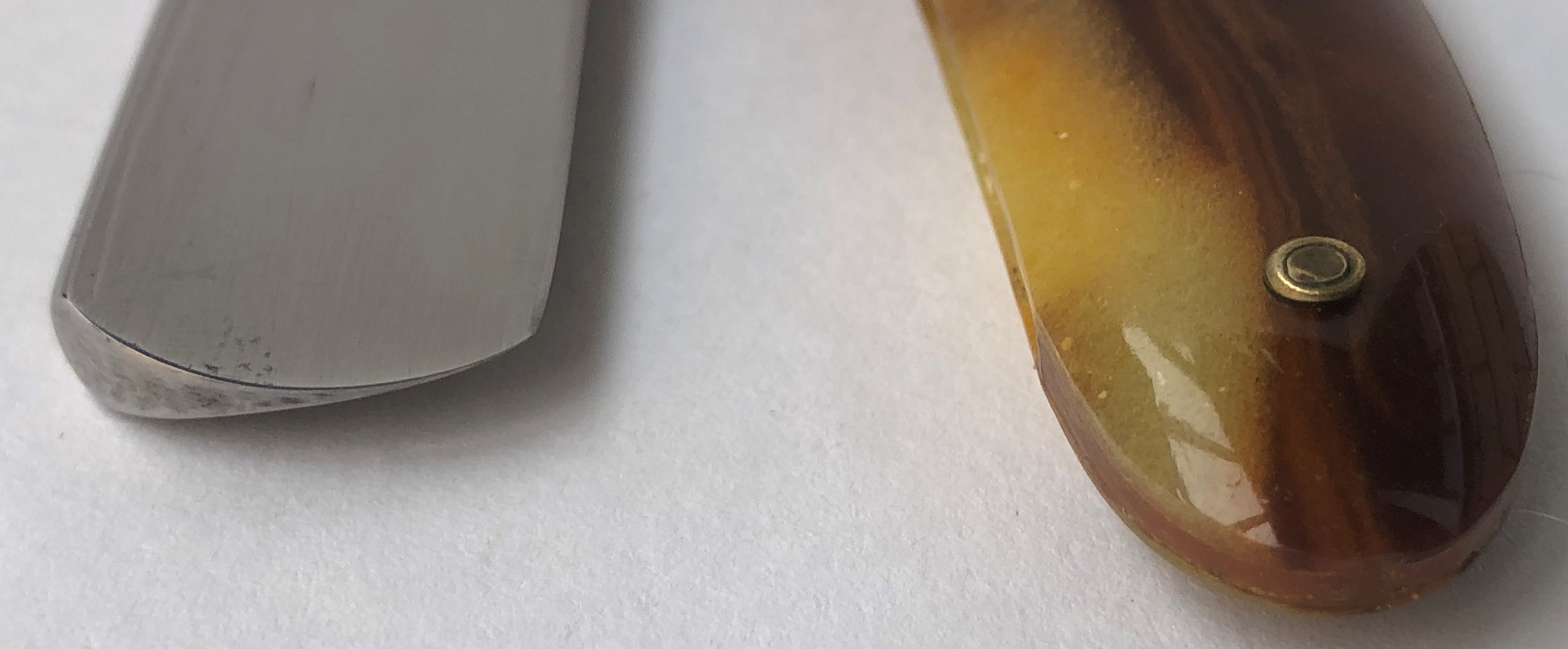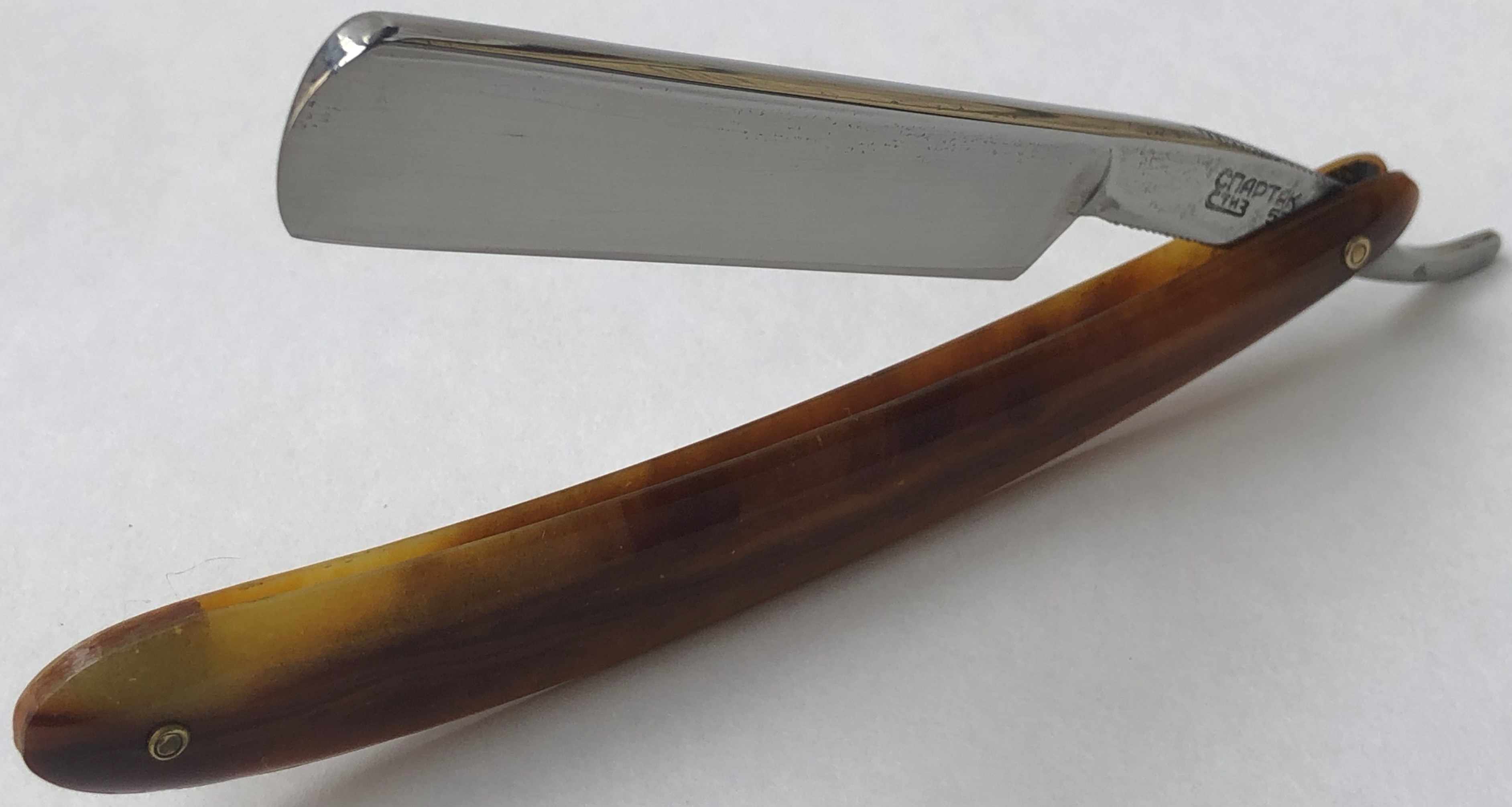 Бритва в хорошем и рабочем состоянии. Не разбиралась и не ремонтировалась.Немного отполировал клинок и все.Аккуратное пользование, хранение и заточка.Само травление чёткое, без потертостей.Кромочка равномерна по всей длине.Бритва для тех, кто не гоняется за коллекционным состоянием, а хочет иметь просто недорогой и рабочий инструмент..